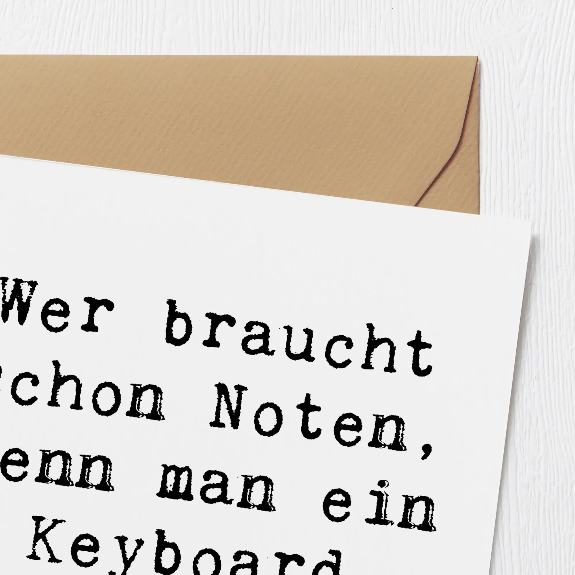 Der besondere Spruch „Wer braucht schon Noten, wenn man ein Keyboard hat?“ verleiht der Karte eine charmante Note, die jedem Musiker ein Lächeln ins Gesicht zaubern wird. Der edle Umschlag, der im Lieferumfang enthalten ist, sorgt dafür, dass deine Grüße stilvoll und sicher überreicht werden.