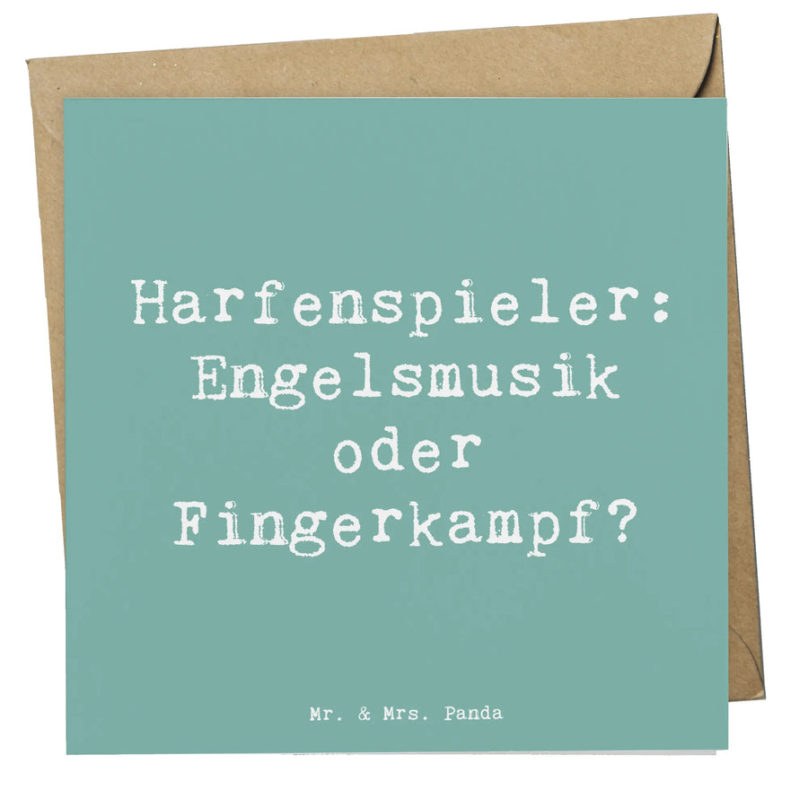 Mit dem Spruch "Harfenspieler: Engelsmusik oder Fingerkampf?" wird der Empfänger zum Schmunzeln gebracht! Die Karte ist aus hochwertigem 300 Gramm Karton gefertigt und hat eine glänzende Vorderseite, die sie besonders edel erscheinen lässt. Die matte Innenseite eignet sich hervorragend für eigene Glückwünsche oder persönliche Botschaften.