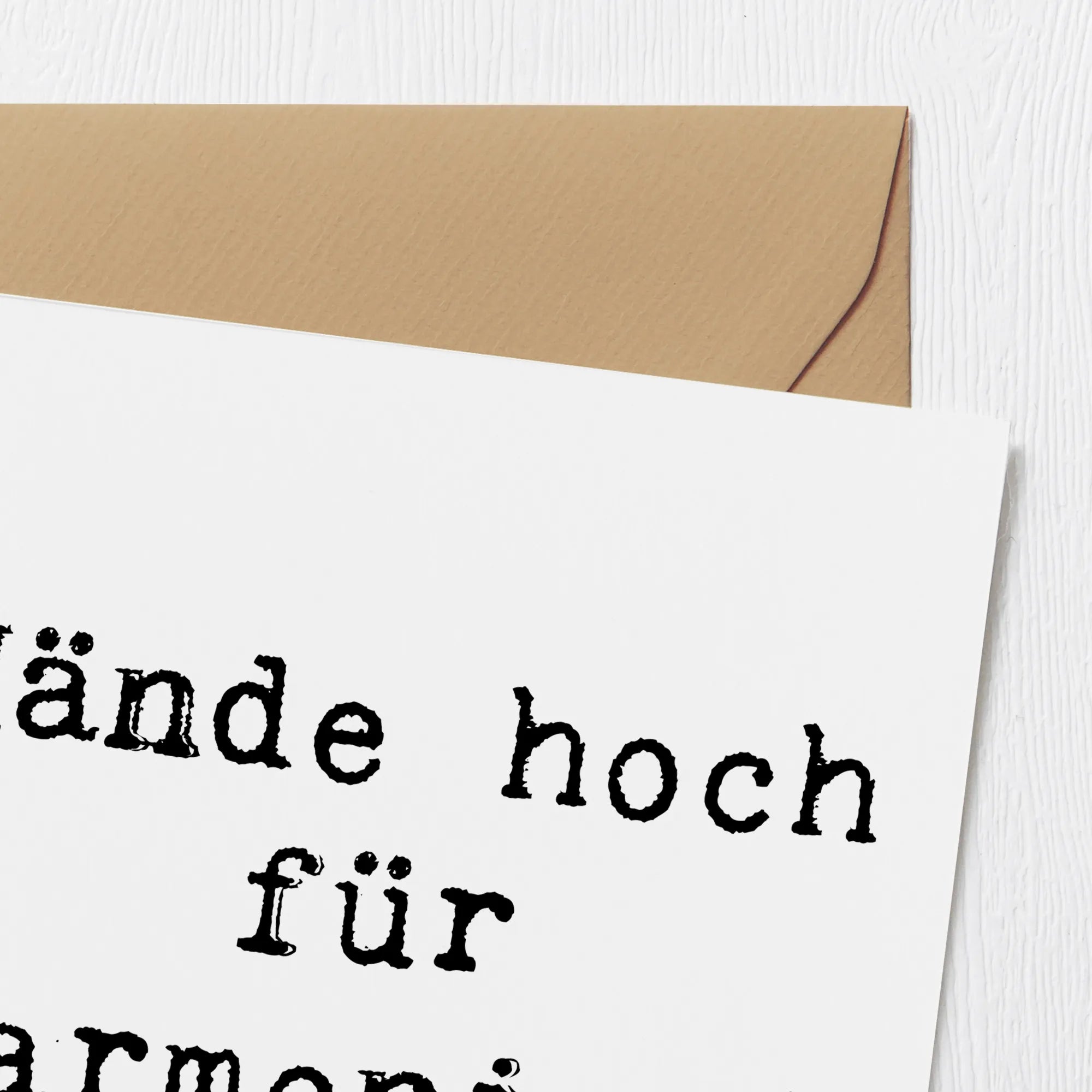 Ein besonderes Merkmal dieser Karte ist der liebevolle Spruch „Hände hoch für Harmonien!“, der jeden musikalischen Anlass perfekt untermalt. Ob zur Einladung zu einer Performance, als Glückwunschkarte für einen Musikergeburtstag oder als Hochzeitskarte für das Paar, das die Liebe zur Musik teilt – diese Karte ist die ideale Wahl.