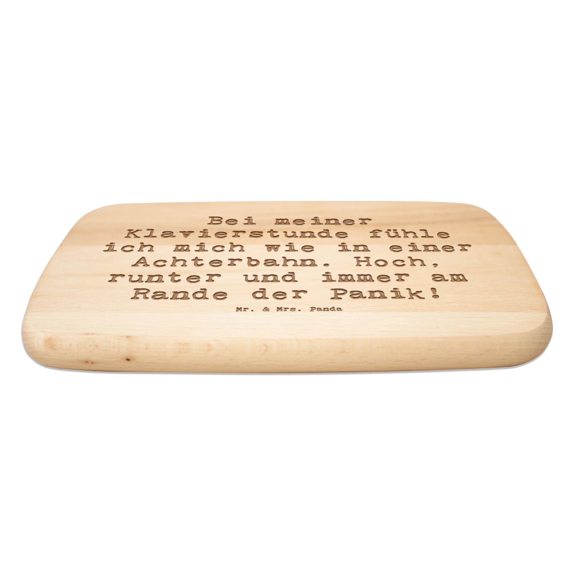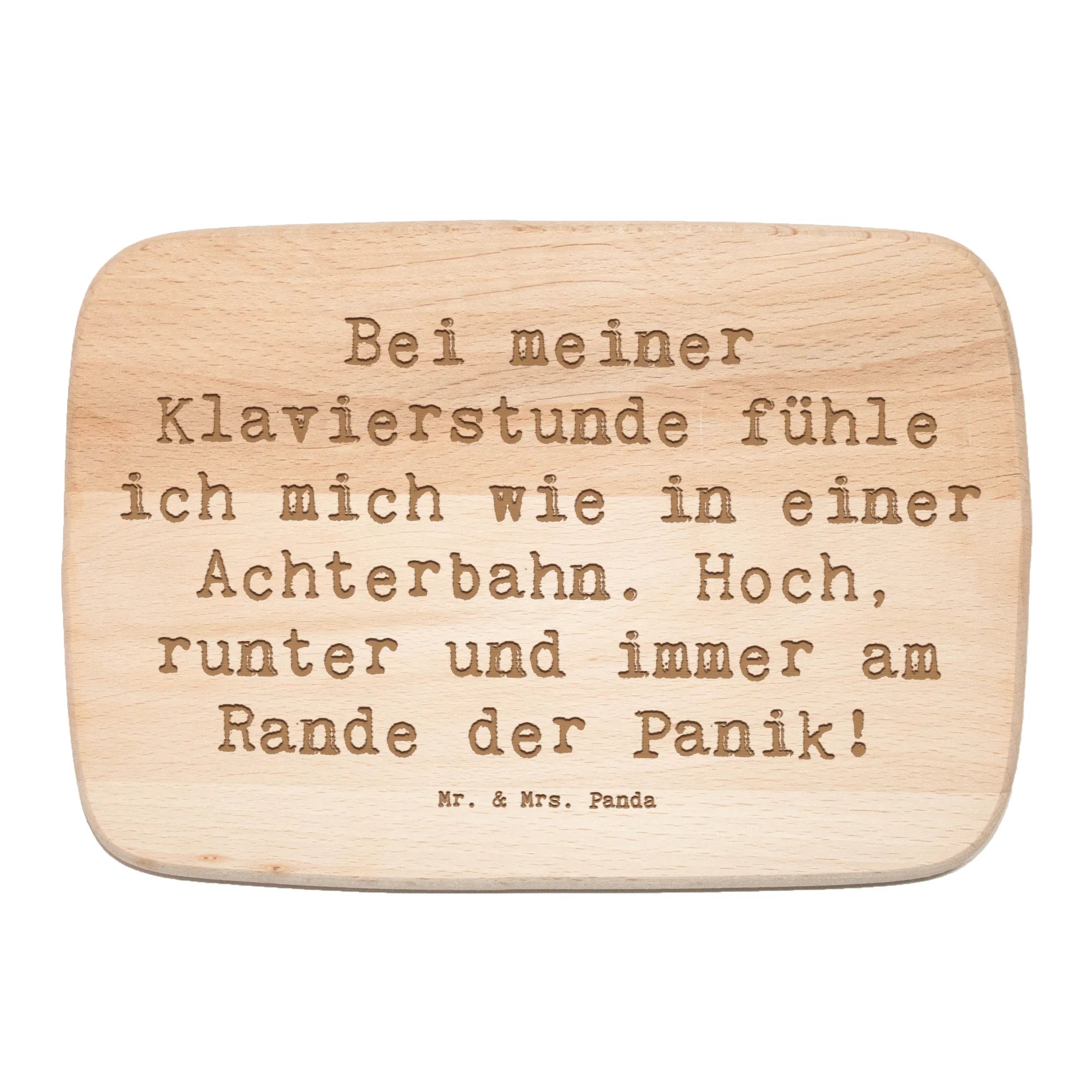 Das robuste Birkenholz sorgt dafür, dass dein Frühstücksbrett langlebig und strapazierfähig ist - genau das, was du brauchst, um deine täglichen Mahlzeiten und Snacks zu präsentieren. Der Spruch „Bei meiner Klavierstunde fühle ich mich wie in einer Achterbahn. Hoch, runter und immer am Rande der Panik!“ macht das Brett zu einem humorvollen Geschenk für jeden Musikliebhaber.