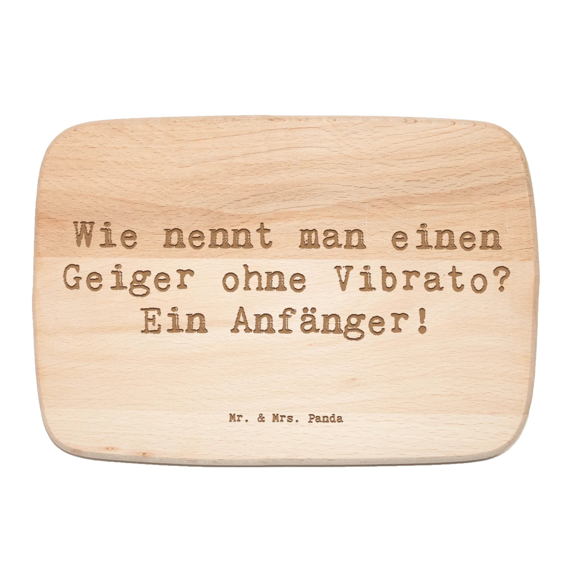 Jeder kennt den Spruch: "Wie nennt man einen Geiger ohne Vibrato? Ein Anfänger!" und genau dieser Spruch bringt ein Lächeln auf die Gesichter aller, die sich mit dem Thema Musik und Violine identifizieren. Besonders geeignet als Geschenk zum Geburtstag, zur Einweihung oder sogar als kleine Aufmerksamkeit für den Lehrer der Musikschule! Ob für den eigenen Frühstückstisch oder als Präsent für einen Freund, dieses Brett sorgt für Freude und macht das Frühstück zu einem musikalischen Erlebnis.