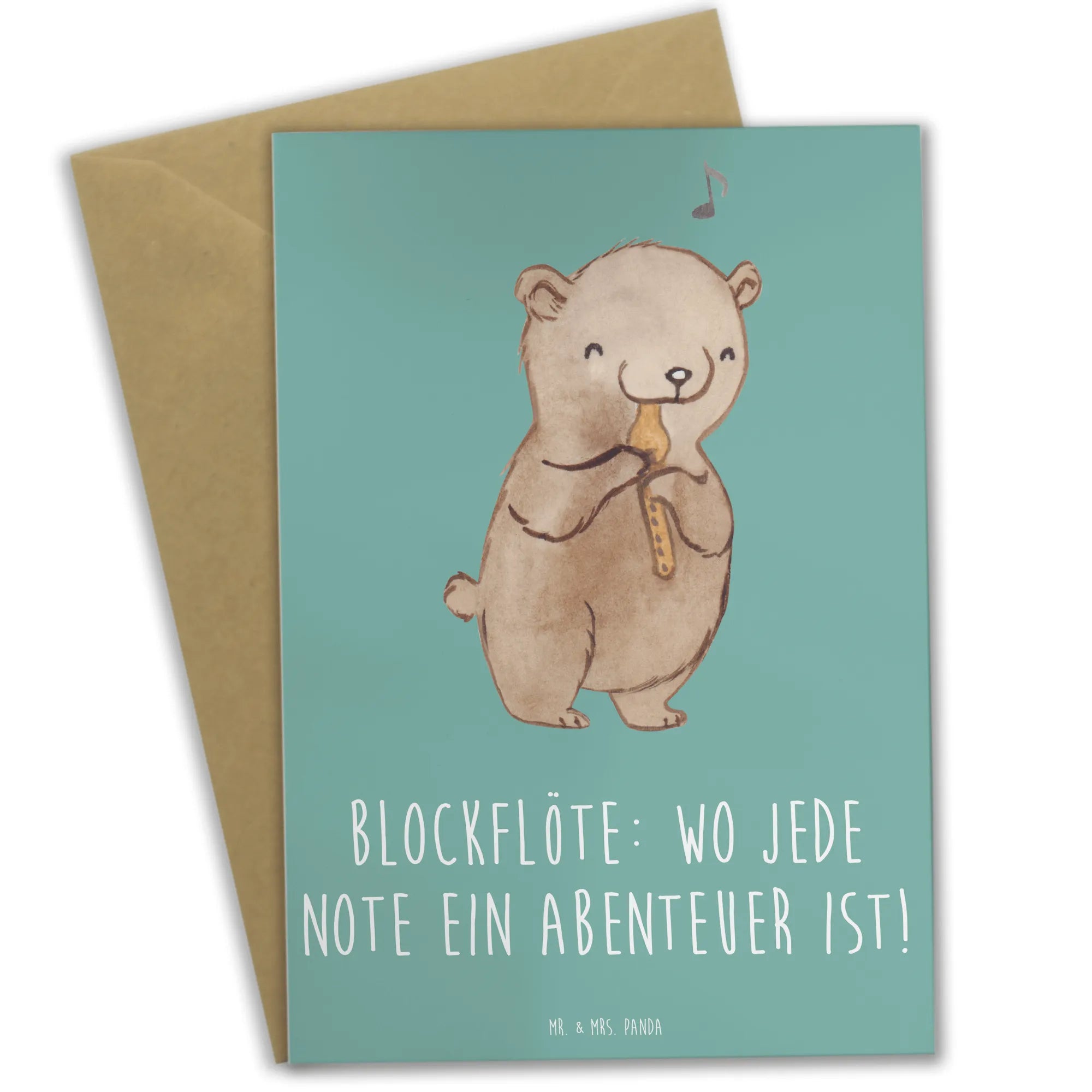 Die wunderschöne Grußkarte von Mr. & Mrs. Panda mit dem einzigartigen Motiv der Blockflöte ist das perfekte Geschenk für Musikliebhaber, angehende Musiker und alle, die die Freude an der Musik schätzen. Mit dem Slogan "Blockflöte: Wo jede Note ein Abenteuer ist!" lädt diese Karte dazu ein, besondere Glückwünsche und persönliche Botschaften zu übermitteln.