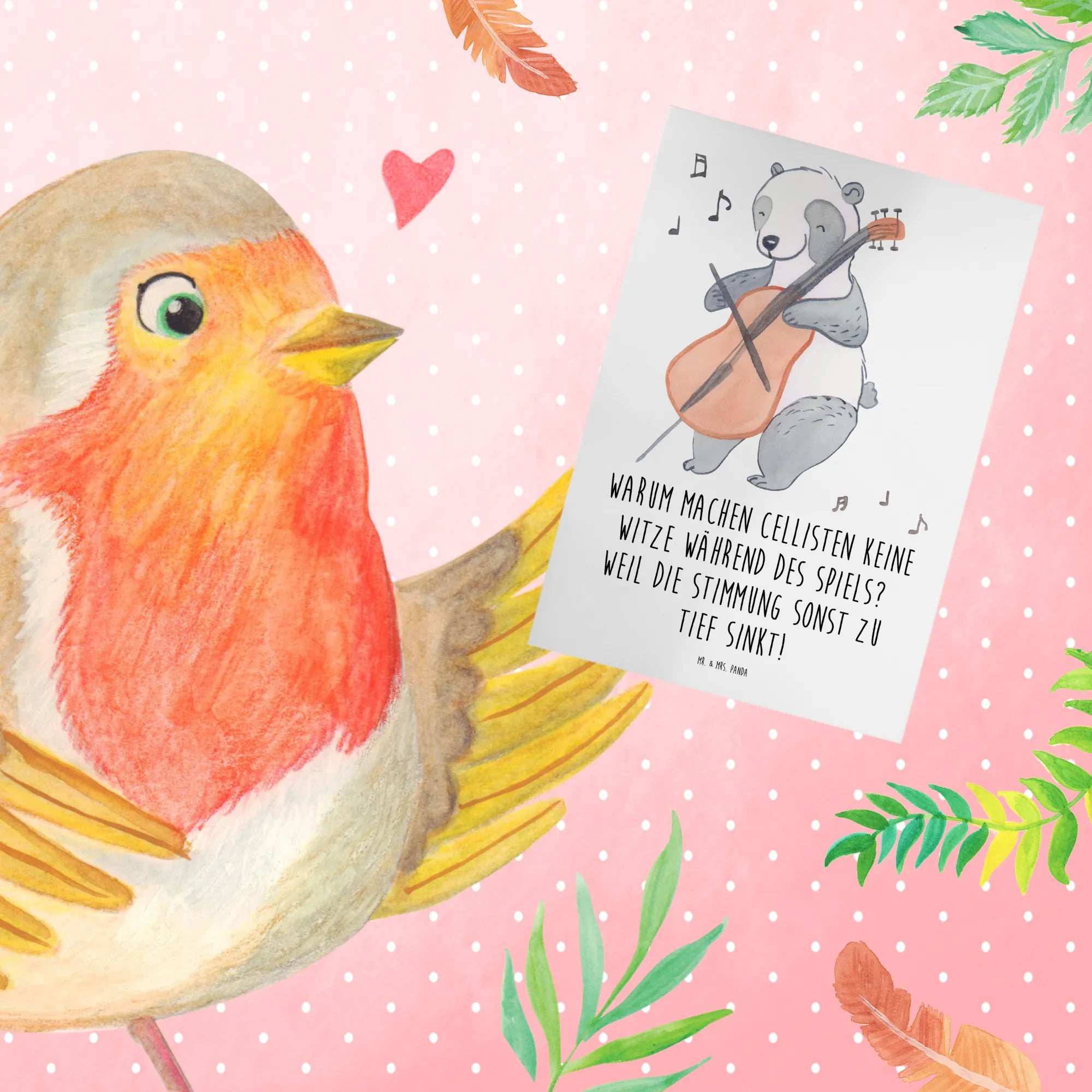 Entdecke die wunderschöne Grußkarte von Mr. & Mrs. Panda, die das Cello zum Hauptmotiv hat! Diese Karte ist nicht nur ein tolles Geschenk für Musiker und Musikliebhaber, sondern auch für jeden Anlass ideal geeignet. Mit dem charmanten Spruch "Warum machen Cellisten keine Witze während des Spiels? Weil die Stimmung sonst zu tief sinkt!" zaubert sie jedem ein Lächeln ins Gesicht.
