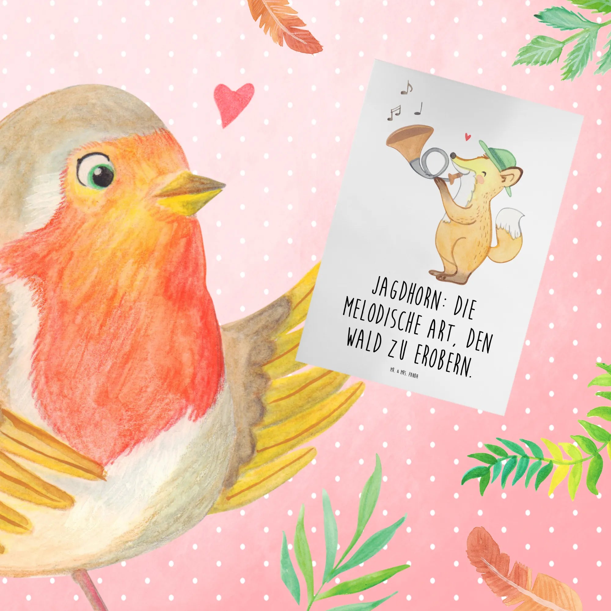 Die Grußkarte mit dem Jagdhorn-Motiv von Mr. & Mrs. Panda ist das perfekte Geschenk für alle Musikliebhaber, Jäger und Naturliebhaber. Diese wunderschöne und einzigartige Grußkarte wurde auf hochwertigem Karton gedruckt und vereint Tradition und Musikalität in einem charmanten Design.