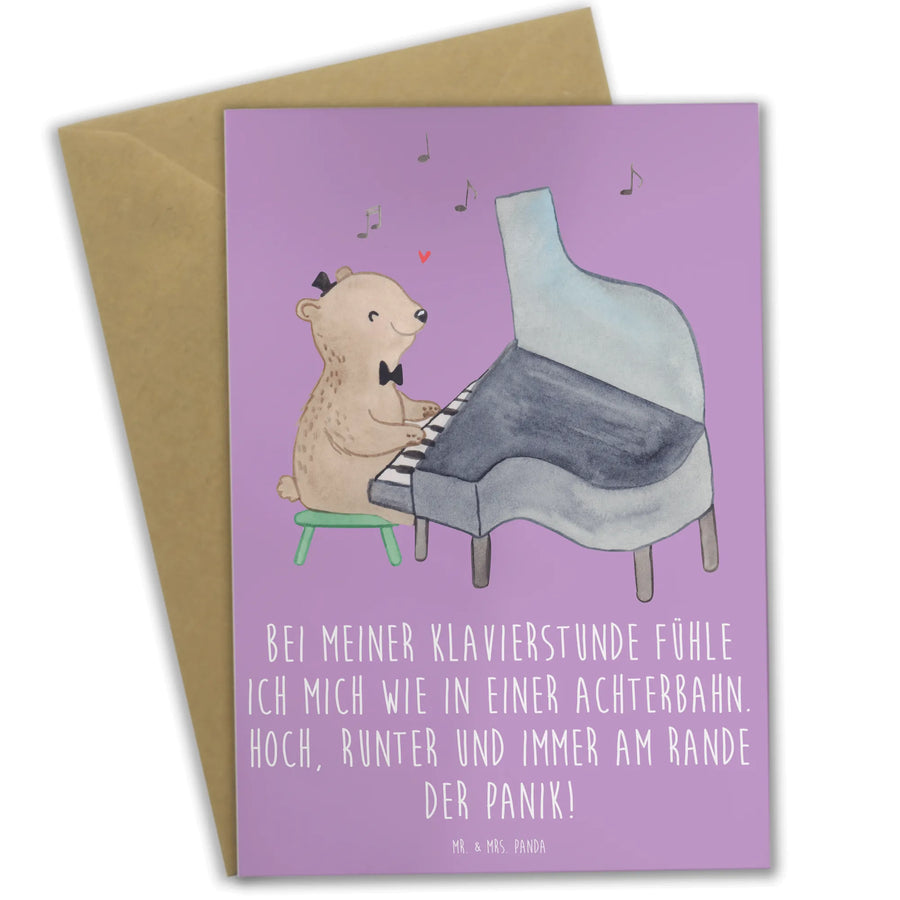 Die wunderschöne Grußkarte von Mr. & Mrs. Panda mit dem Motif Klavier ist das perfekte Geschenk für alle Musikliebhaber und angehenden Musiker! Egal, ob für die Einladung zur nächsten Klavierstunde, als Glückwunschkarte zur bestandenen Prüfung oder einfach, um einem Freund eine Freude zu machen - diese Karte begeistert durch ihre originelle Gestaltung und den humorvollen Spruch: 'Bei meiner Klavierstunde fühle ich mich wie in einer Achterbahn. Hoch, runter und immer am Rande der Panik!'.