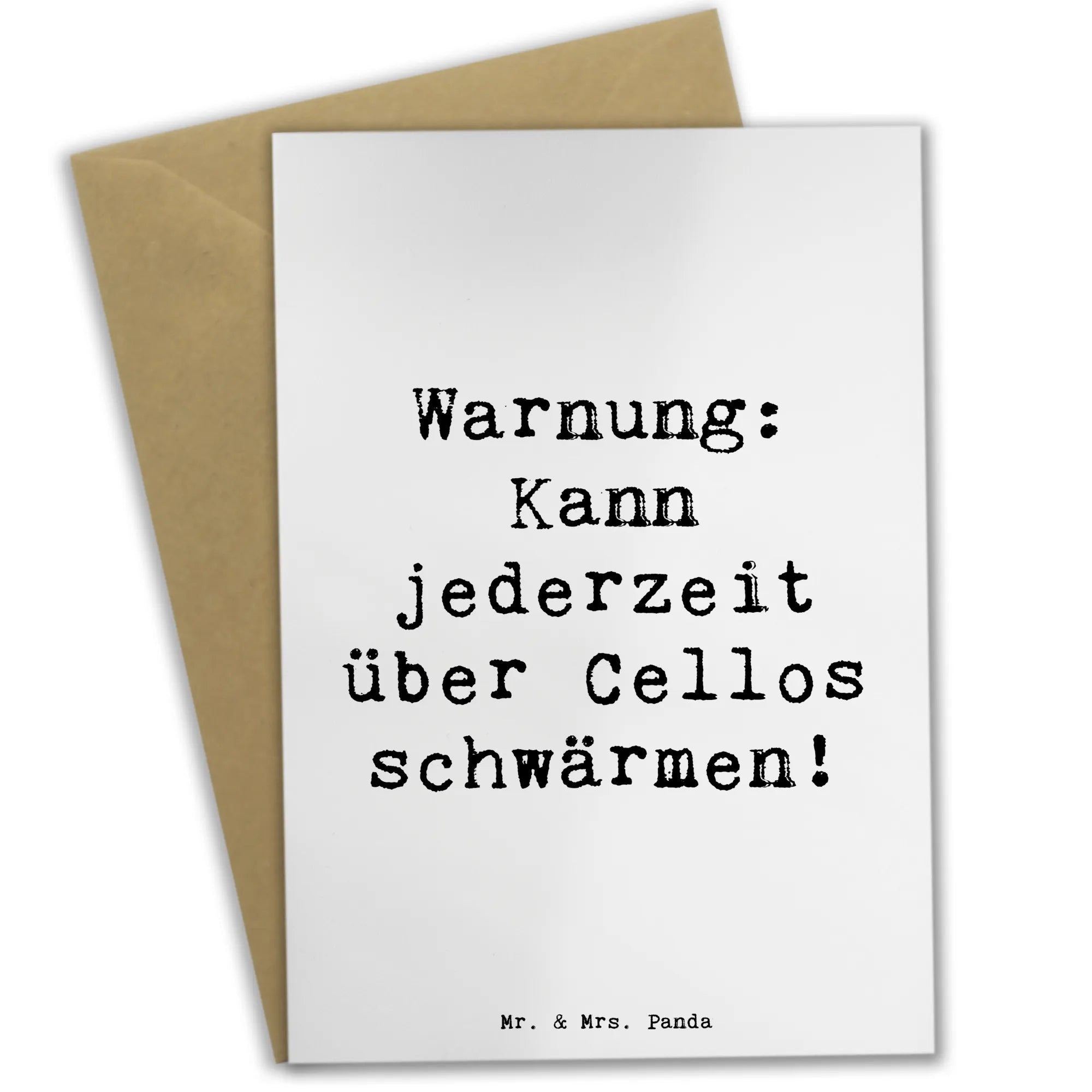 Die Karte trägt den lustigen Spruch: 'Warnung: Kann jederzeit über Cellos schwärmen!' – ein zusätzlicher Anlass zum Schmunzeln und vielleicht sogar zum gemeinsamen Musizieren.