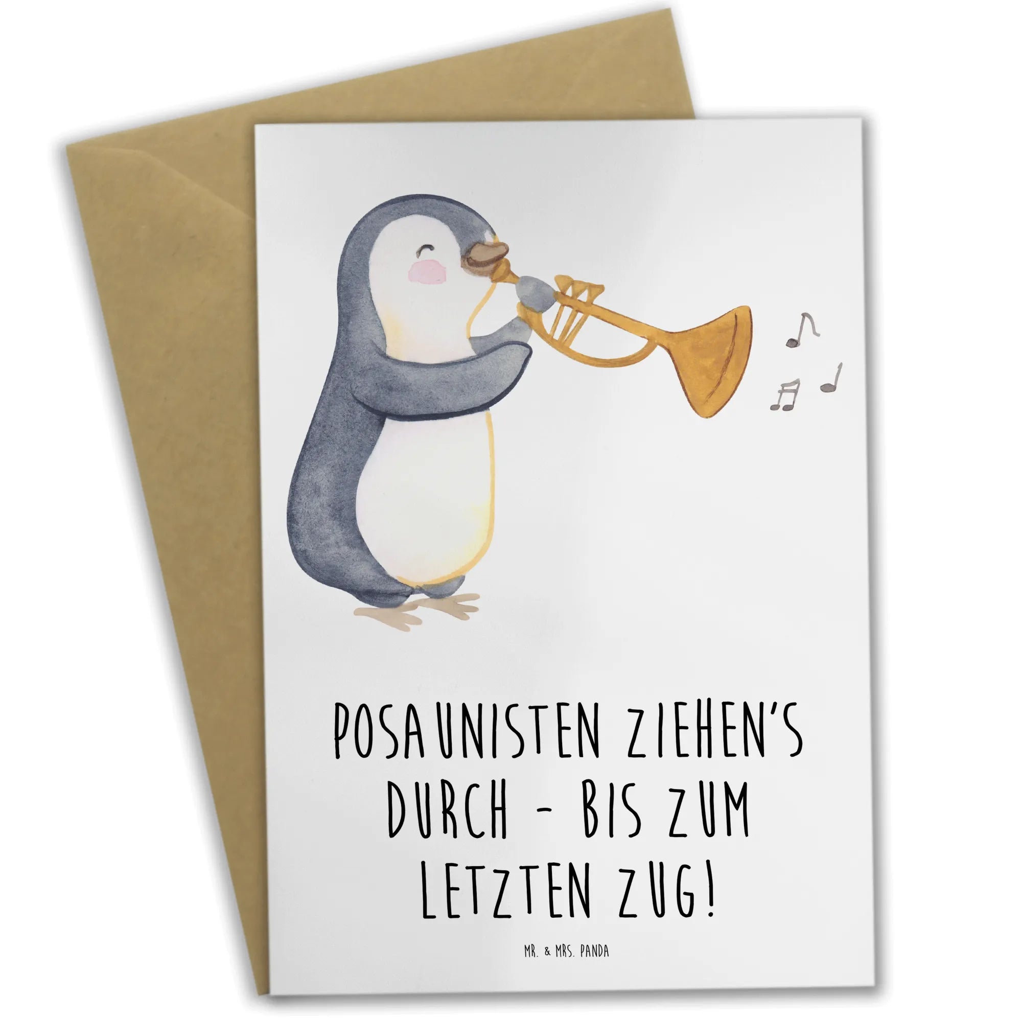 Die wunderschöne Grußkarte "Posaunisten ziehen's durch - bis zum letzten Zug!" von Mr. & Mrs. Panda ist nicht nur eine Karte, sondern ein liebevolles Geschenk für alle Musikliebhaber und Posaunisten! Wenn du auf der Suche nach einer perfekten Grußkarte für einen Musiker oder einen Posaunisten bist, dann bist du hier genau richtig.