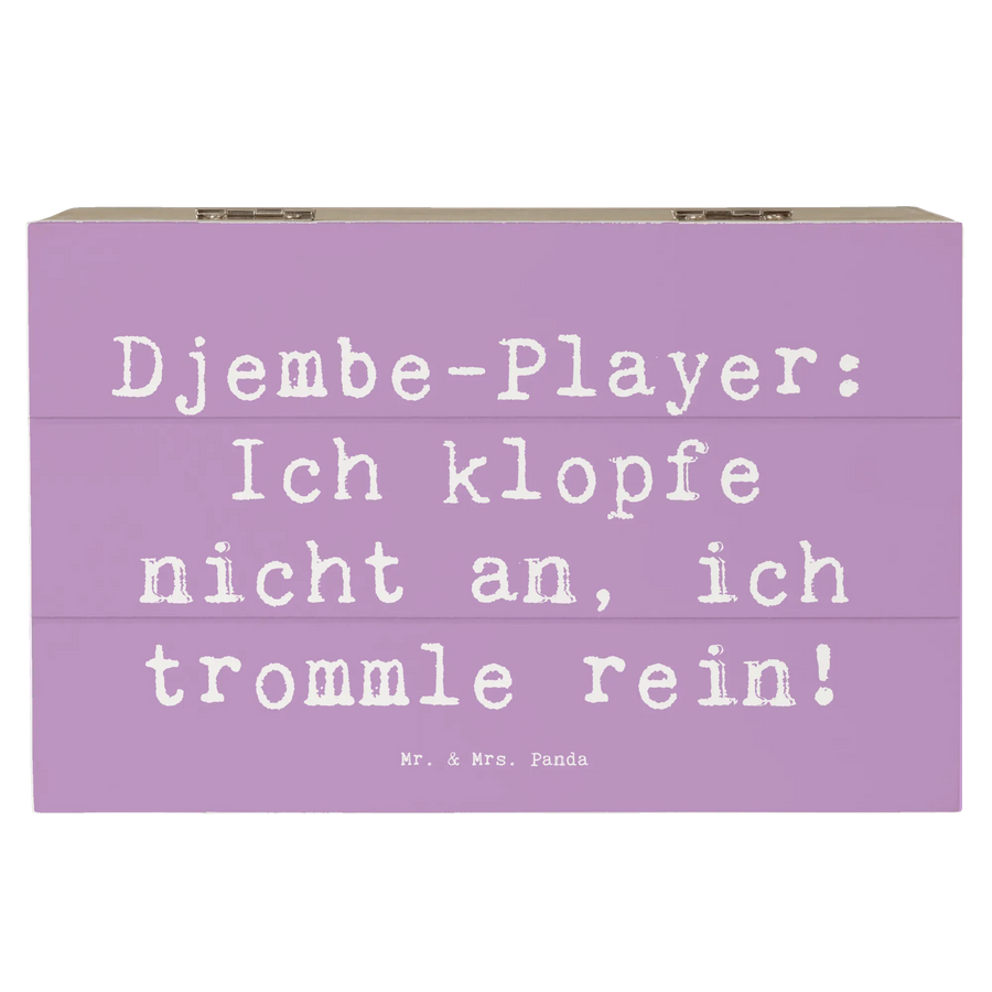 Die Holzkiste Djembe von Mr. & Mrs. Panda ist das perfekte Geschenk für Musikliebhaber aller Altersgruppen! Mit ihrem charmanten Design und der originellen Botschaft "Djembe-Player: Ich klopfe nicht an, ich trommle rein!" ist sie nicht nur ein echter Hingucker, sondern auch ein praktischer Aufbewahrungsort für all deine Schätze.