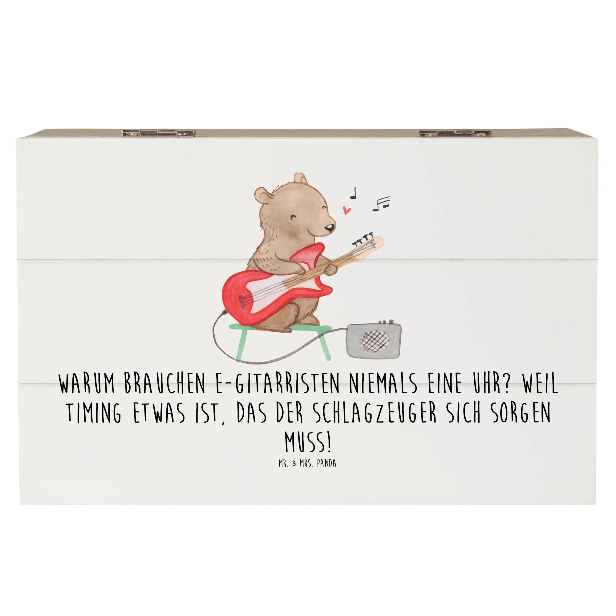 Die wunderschöne Holzkiste von Mr. & Mrs. Panda ist der perfekte Aufbewahrungsort für all deine Schätze! Mit einem bezaubernden Motiv einer E-Gitarre aus unserer Kollektion "Musizieren & Instrumente" wird diese Kiste zum idealen Geschenk für Musiker und Musikliebhaber. Ob Erinnerungsstücke, Fotos oder kleine Geschenke – hier findet alles seinen Platz!