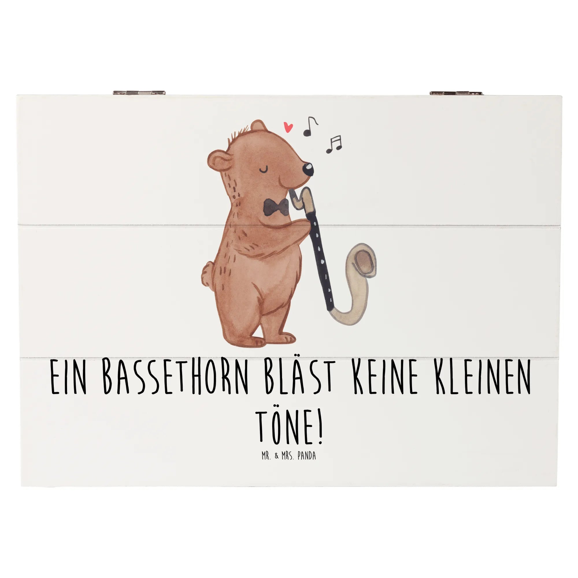 Eine wunderschöne Holzkiste von Mr. & Mrs. Panda – die perfekte Kombination aus Stil und Funktion für alle Musikfreunde. Unsere Holzkiste Bassethorn aus der Kollektion Musizieren & Instrumente trägt das elegante Bassethorn-Motiv und den charmanten Spruch „Ein Bassethorn bläst keine kleinen Töne!“ und ist damit ein liebevolles Geschenk für Musiker, Musikschüler und Fans klassischer Kammermusik. 🎶