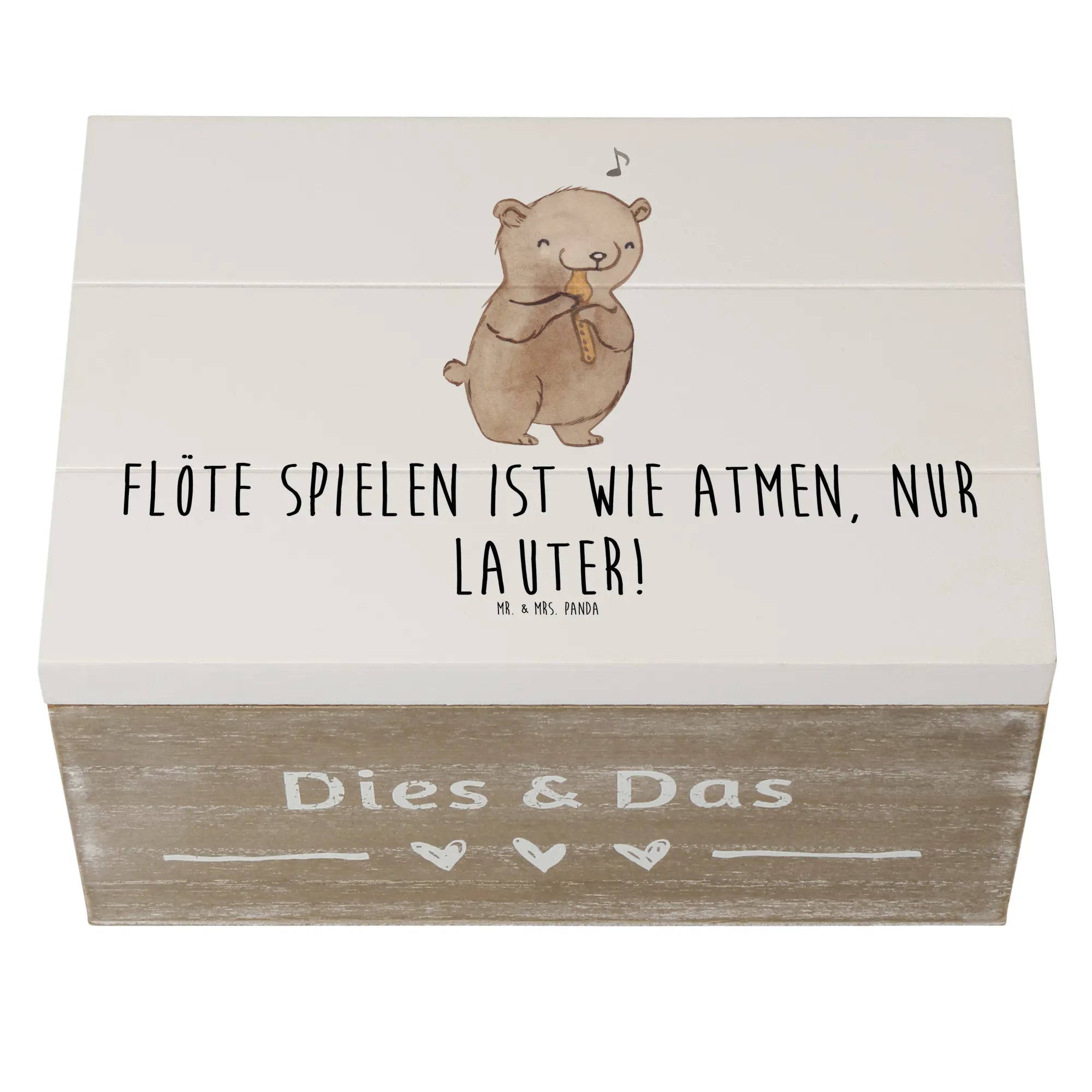 Die wunderschöne Holzkiste von Mr. & Mrs. Panda ist nicht nur ein echter Hingucker, sondern auch das perfekte Geschenk für kleine und große Musikliebhaber! Mit ihrem zauberhaften Motiv der Flöte und dem humorvollen Spruch "Flöte spielen ist wie atmen, nur lauter!" bringt sie Freude und Leben in jedes Zuhause.