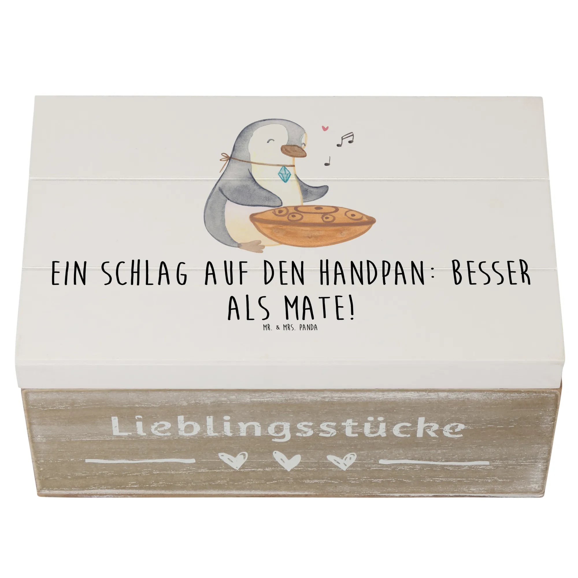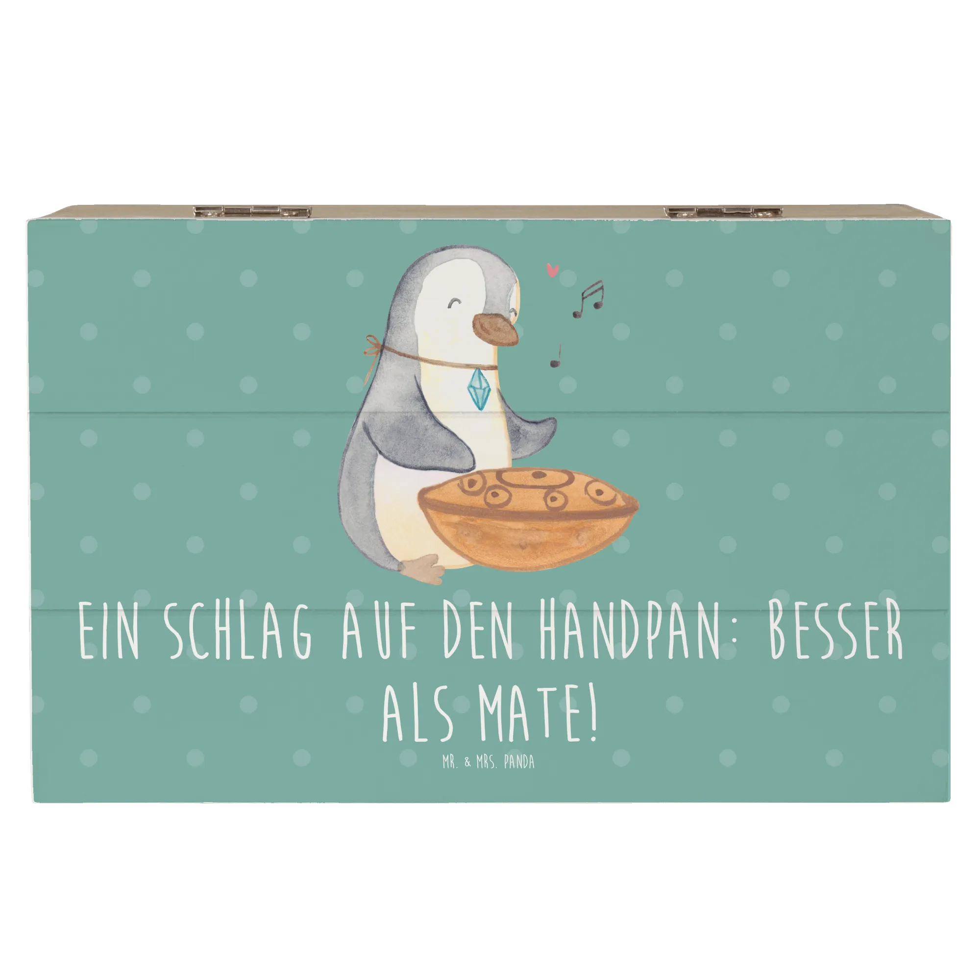 Die wunderschöne Holzkiste von Mr. & Mrs. Panda mit dem einzigartigen Handpan-Motiv ist der perfekte Begleiter für alle Musikliebhaber und Entspannungsfreunde. Mit einem Slogan, der das Herz berührt: "Ein Schlag auf den Handpan: besser als Mate!" Inspiriert von der sanften Melodie und der hypnotischen Wirkung der Handpan, wird diese Kiste zu einem besonderen Ort, an dem Du Deine wertvollsten Erinnerungen und Schätze aufbewahren kannst.