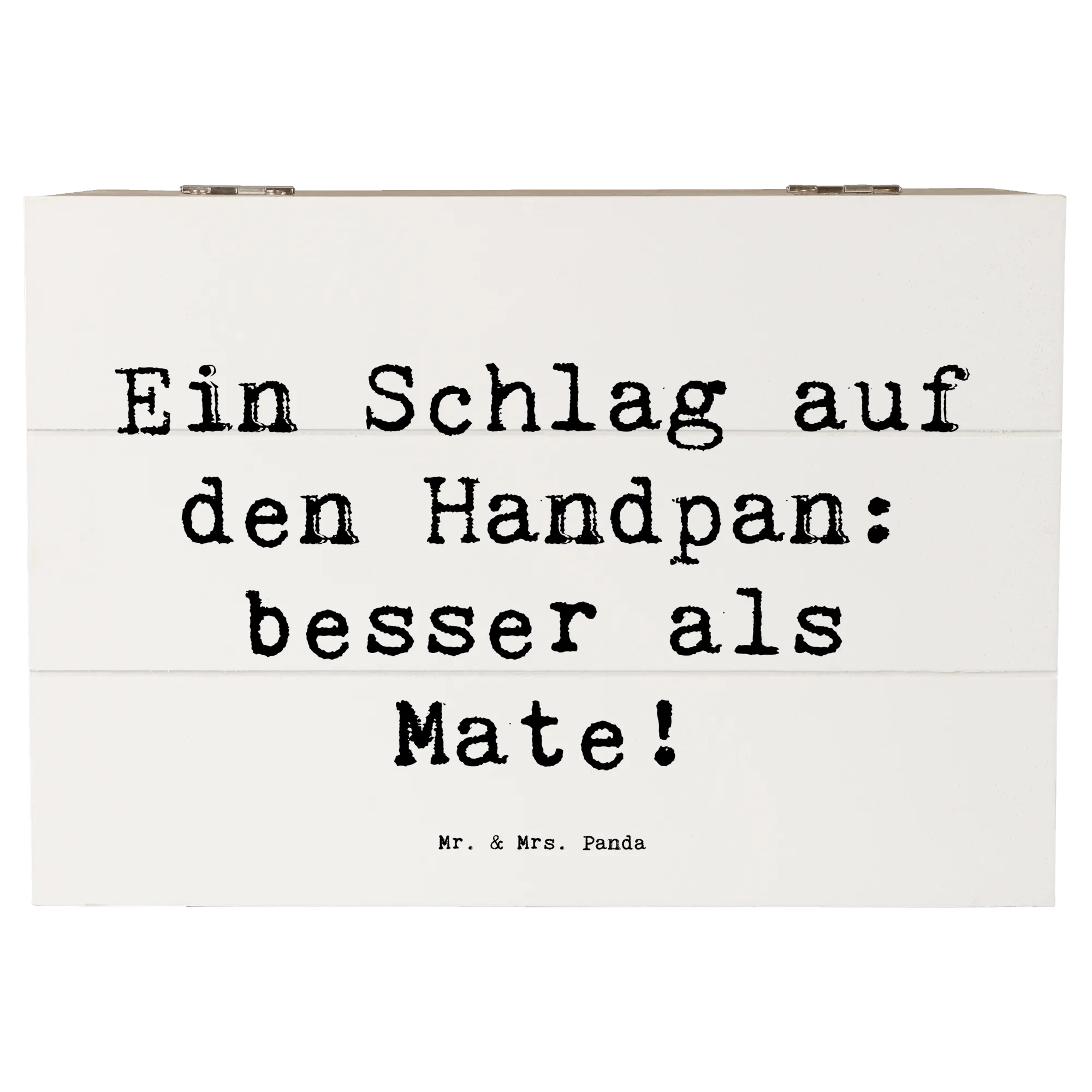 Die Einschlagscharniere ermöglichen ein einfaches Öffnen und Schließen der Kiste, sodass der Zugang zu deinen persönlichen Schätzen jederzeit leicht möglich ist. Der eingravierte Spruch „Ein Schlag auf den Handpan: besser als Mate!“ verleiht der Kiste eine persönliche Note und sorgt für Lächeln bei jedem Geschenk.