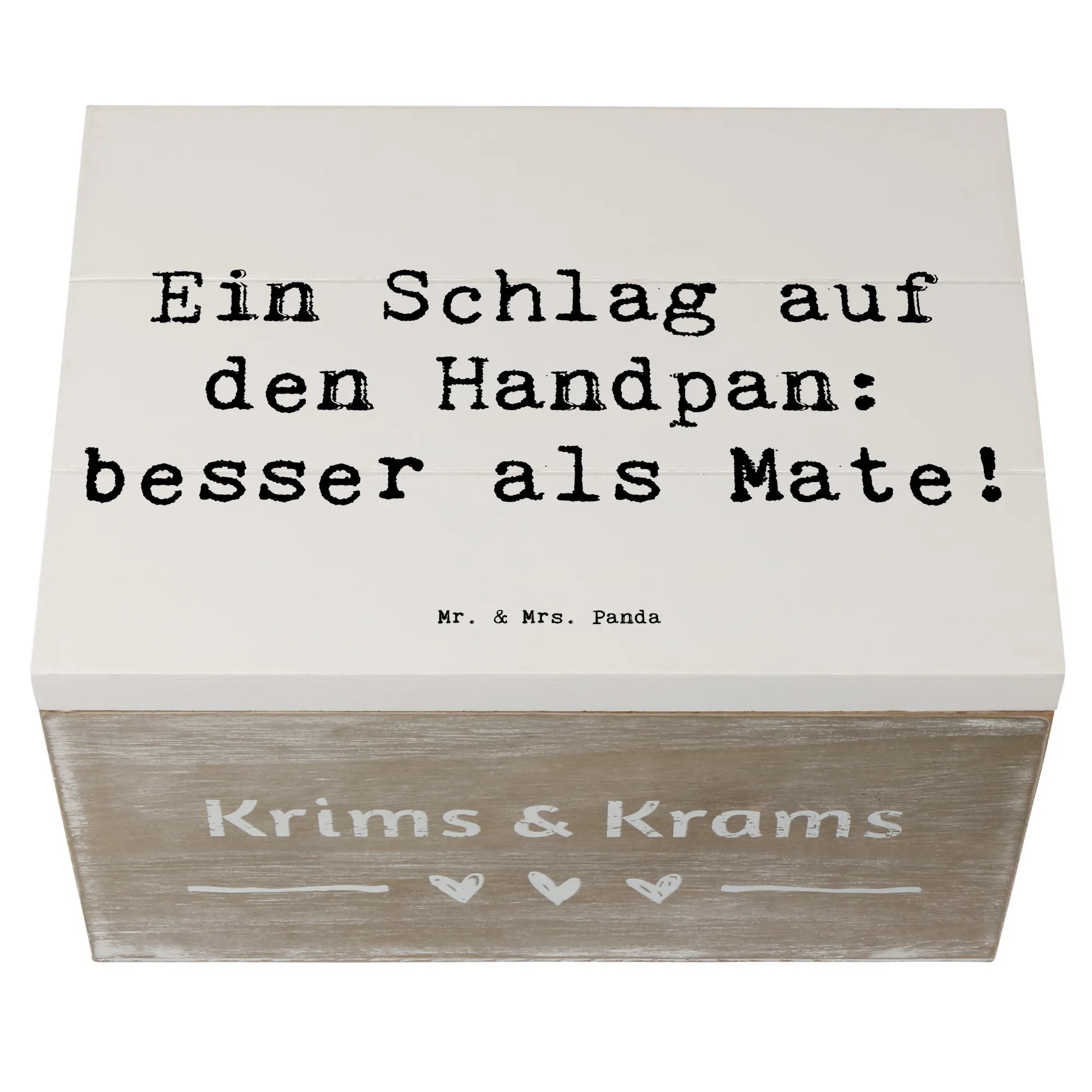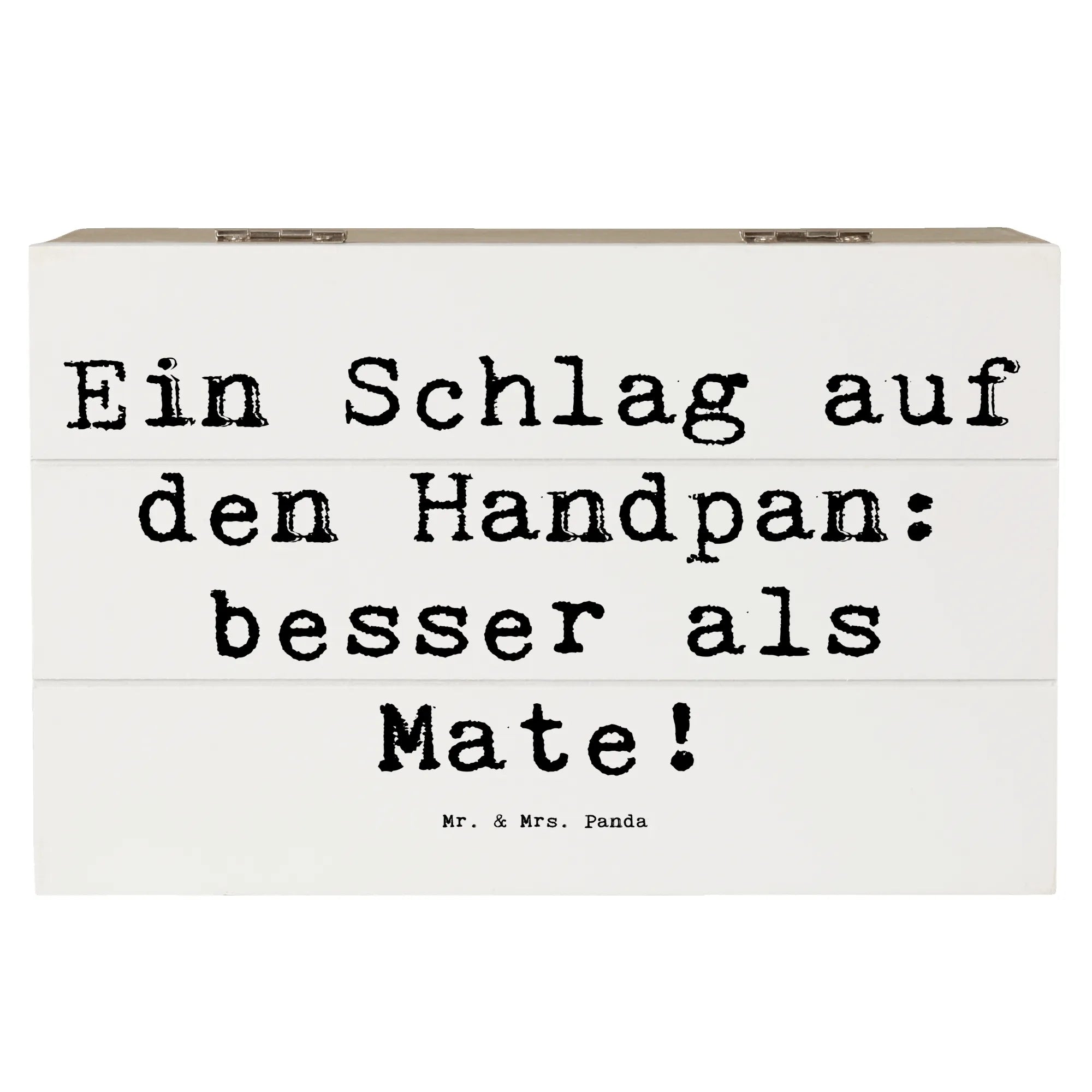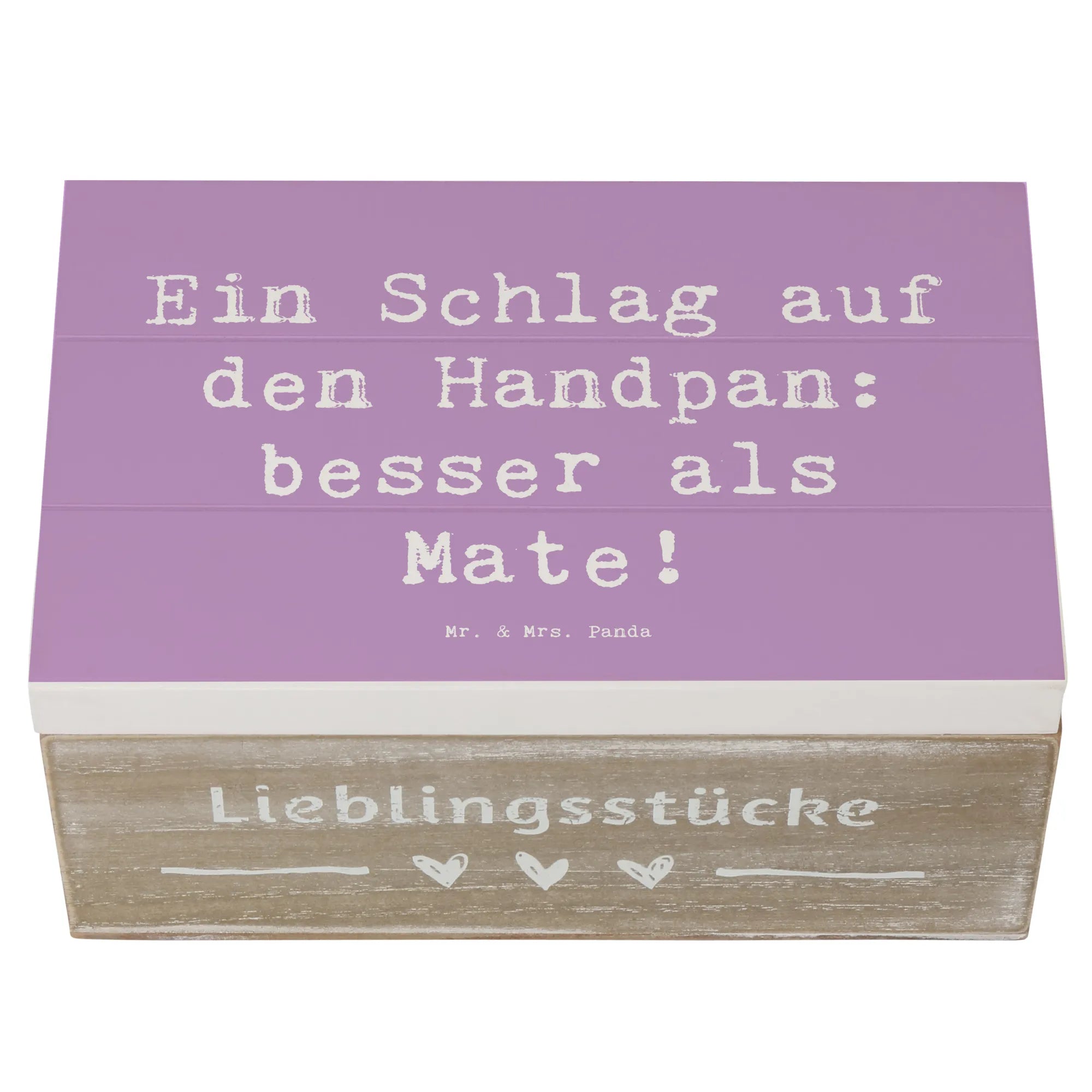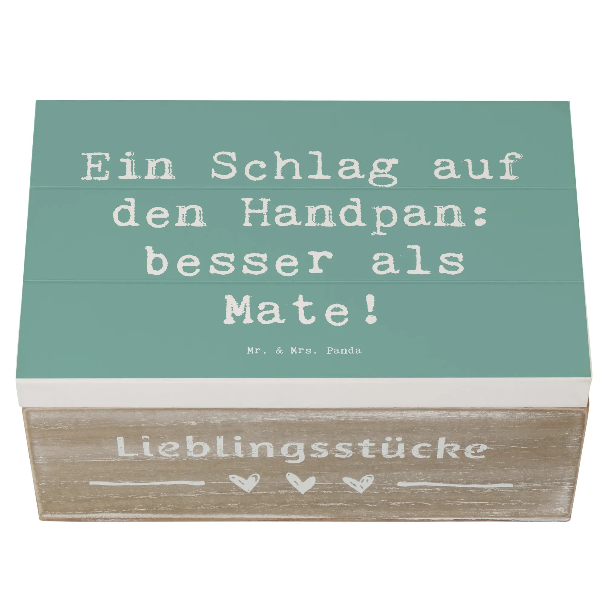 Gönn dir und deinen Liebsten diesen Hauch von Magie und Musik mit der Holzkiste von Mr. & Mrs. Panda. Die Kiste bietet die ideale Gelegenheit, um all die kleinen Schätze des Lebens sicher und schön zu verstauen. Zudem ist sie ein prachtvolles Erinnerungsstück, das immer ein Lächeln ins Gesicht zaubert. Und während du deinen Freunden von der Bedeutung des Handpan spazierst, denk daran: "Ein Schlag auf den Handpan: besser als Mate!"
