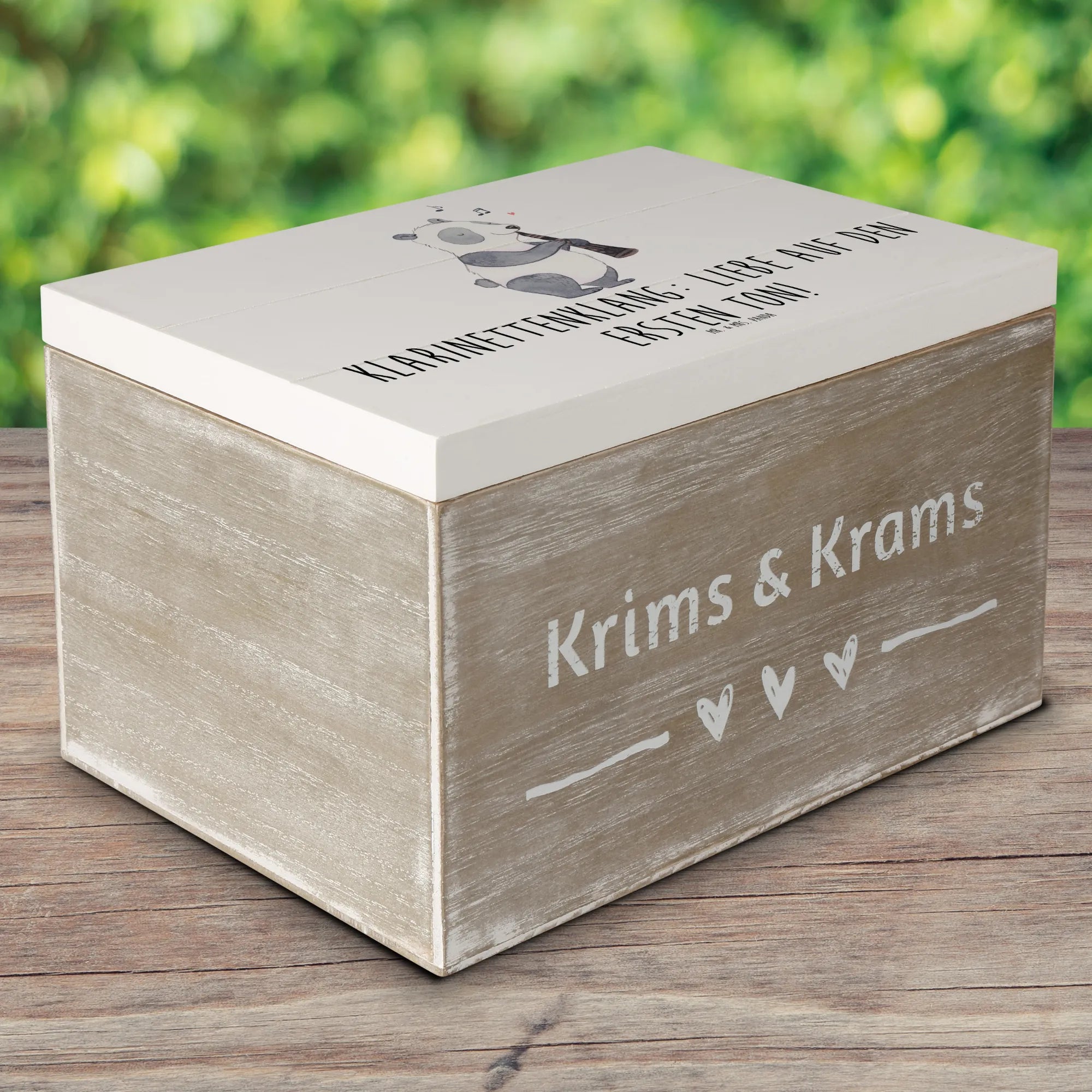 Die wunderschöne Holzkiste von Mr. & Mrs. Panda mit dem Motiv der Klarinette ist das perfekte Geschenk für Musikliebhaber und aufstrebende Klarinettenspieler! Mit dem liebevoll gestalteten Slogan "Klarinettenklang: Liebe auf den ersten Ton!" bringt diese Erinnerungskiste nicht nur einen Hauch von Musik in dein Zuhause, sondern bietet auch einen idealen Aufbewahrungsort für unschätzbare Schätze.