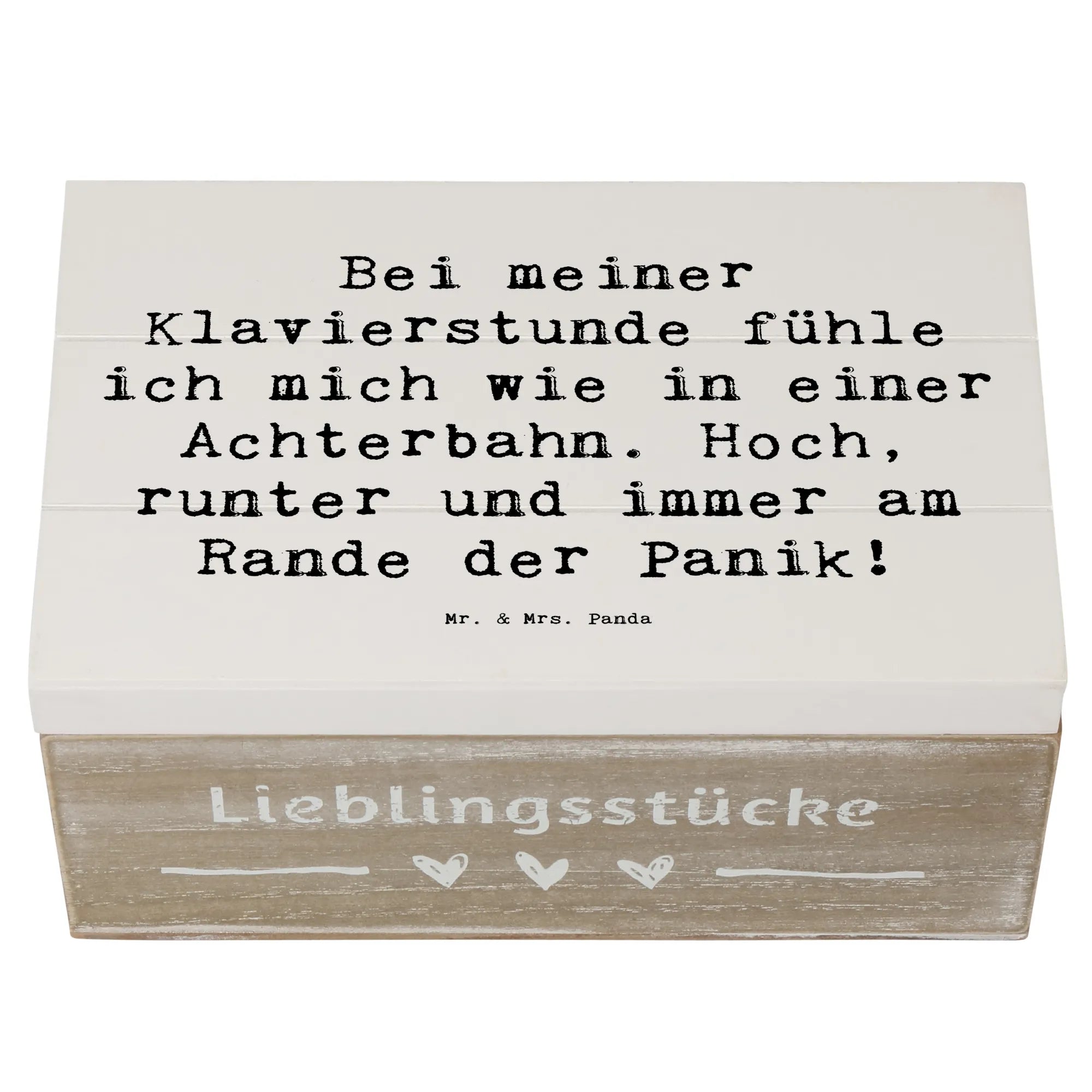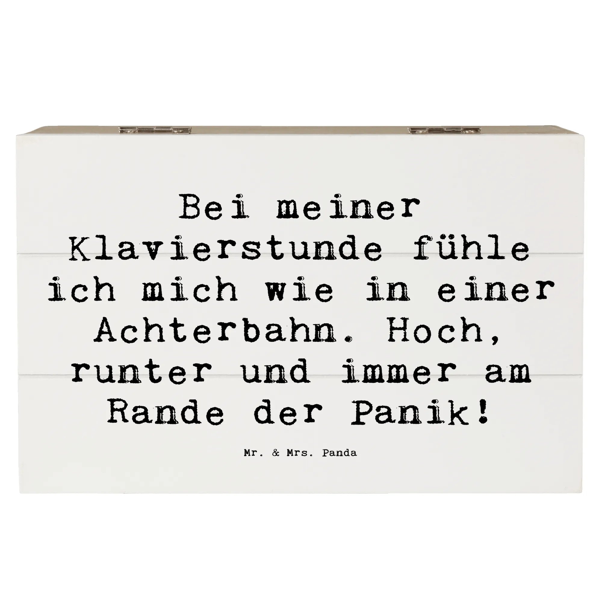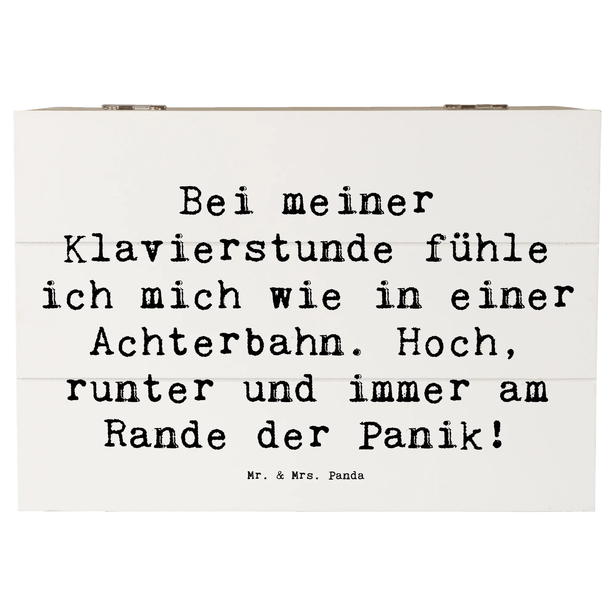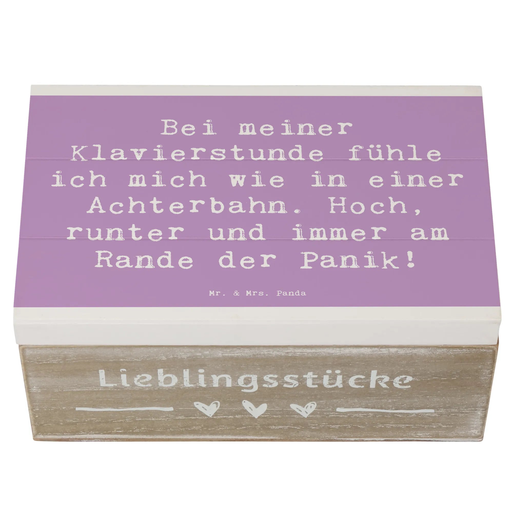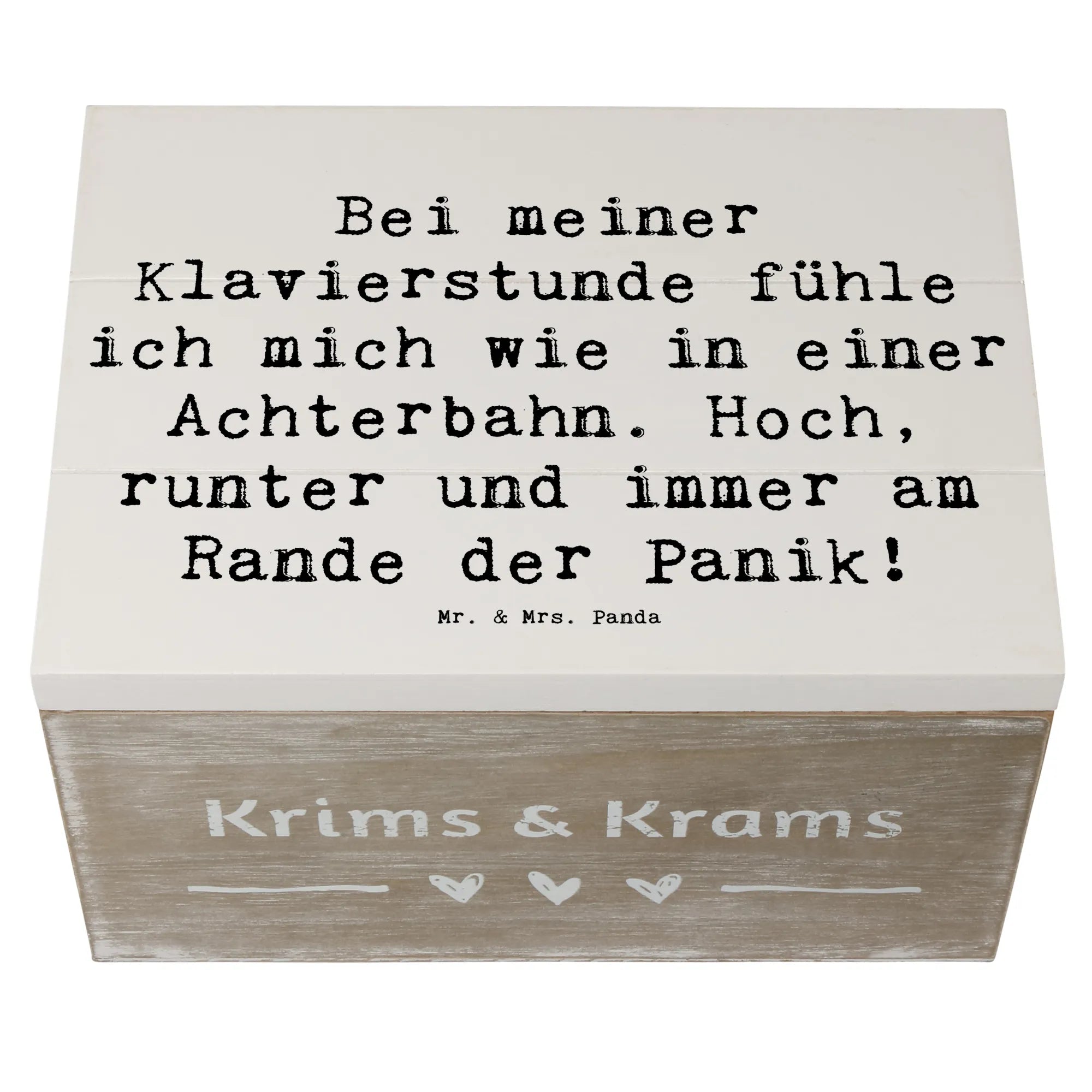 Mit dem passenden Motiv Klavier und dem unterhaltsamen Spruch 'Bei meiner Klavierstunde fühle ich mich wie in einer Achterbahn. Hoch, runter und immer am Rande der Panik!' bringt sie Freude in jedes Zuhause. Ob zur Kommunion, Konfirmation, als Erinnerungskiste für die Kindheit oder einfach als liebevolles Geschenk - unsere Holzkiste ist vielseitig einsetzbar.