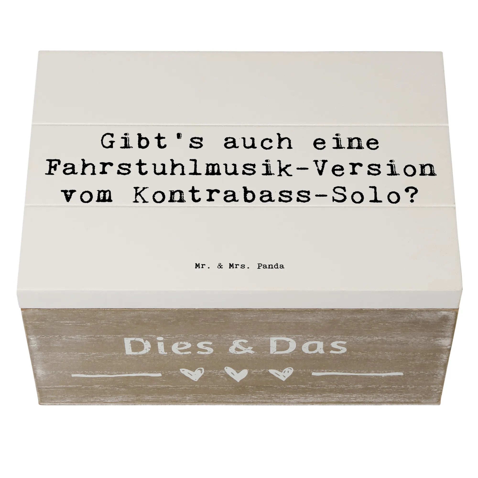 Die einzigartig gestaltete Holzkiste von Mr. & Mrs. Panda ist ein ganz besonderes Geschenk für Musikliebhaber und alle, die die Schönheit von Streichinstrumenten schätzen. Diese zauberhafte Kiste ist bedruckt mit einem wundervollen Kontrabass-Motiv und dem humorvollen Spruch: "Gibt's auch eine Fahrstuhlmusik-Version vom Kontrabass-Solo?" Egal, ob Du nach einem originellen Geburtstagsgeschenk suchst, eine Erinnerungskiste zur Kommunion oder Konfirmation verschenken möchtest oder einfach nur einen schönen Ort brauchst, um Deine wertvollen Erinnerungen aufzubewahren - diese Holzkiste ist die perfekte Wahl!