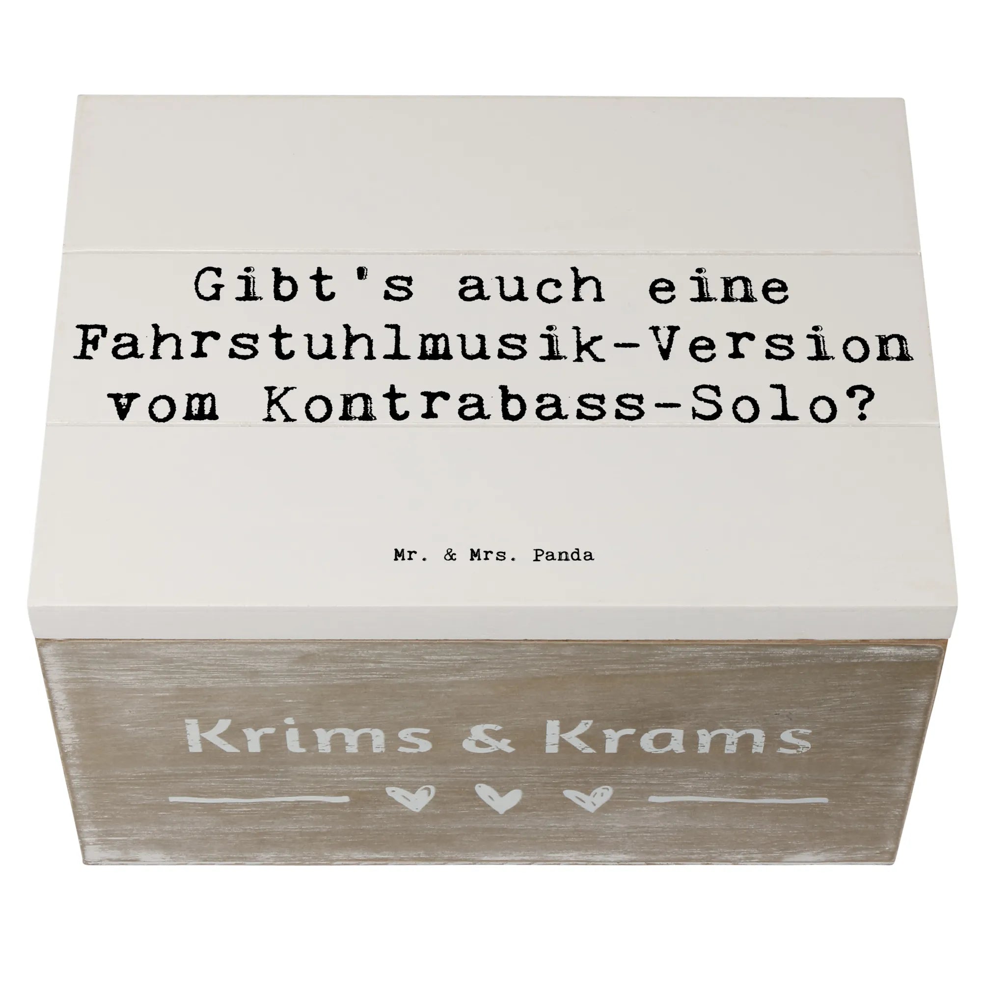 Mit ihrem einzigartigen Slogan 'Gibt's auch eine Fahrstuhlmusik-Version vom Kontrabass-Solo?' sorgt die Kiste für Schmunzeln und gute Laune! Der hochwertige Premium Hartfaser sorgt dafür, dass die Kiste besonders langlebig ist und durch die wasserabweisende Oberfläche auch eine lange Lebensdauer hat. Dank der praktischen Einschlagscharniere lässt sich die Holzkiste ganz leicht öffnen und schließen, so dass du immer schnell an deine Schätze kommst.