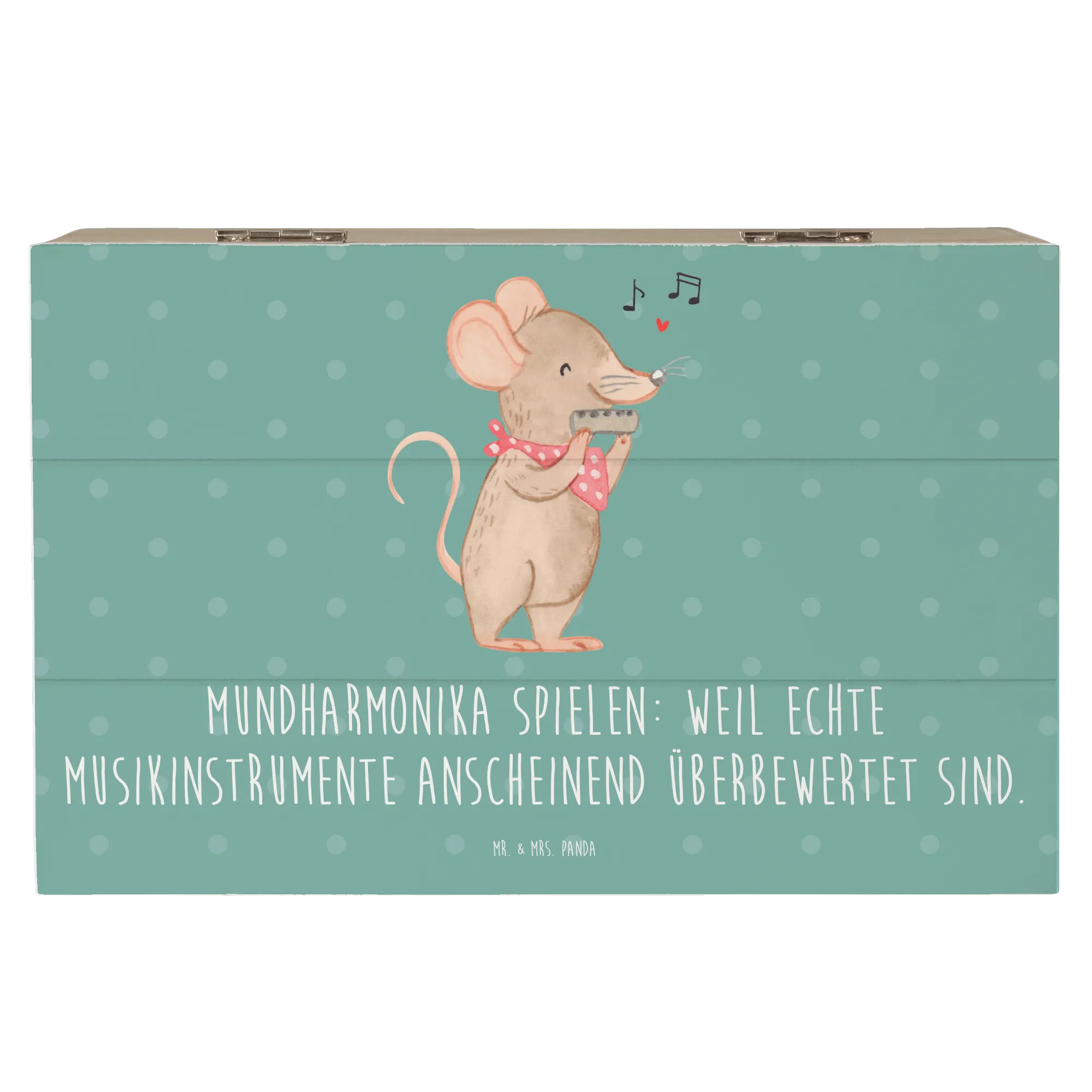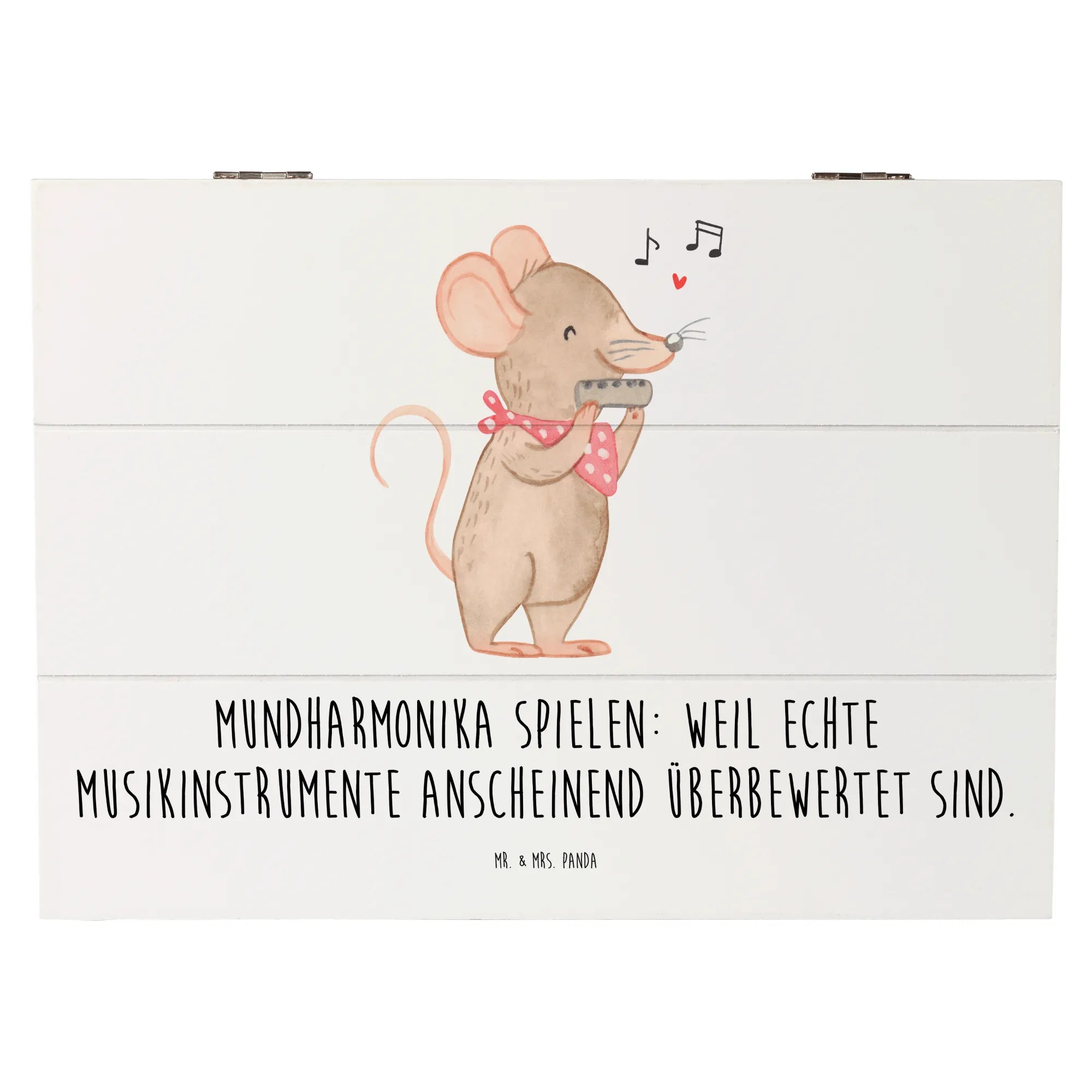 Entdecke die zauberhafte Holzkiste mit dem wundervollen Motiv der Mundharmonika von Mr. & Mrs. Panda! Diese besondere Aufbewahrungsbox ist nicht nur ein praktischer Platz für deine Schätze, sondern auch ein echter Eyecatcher.