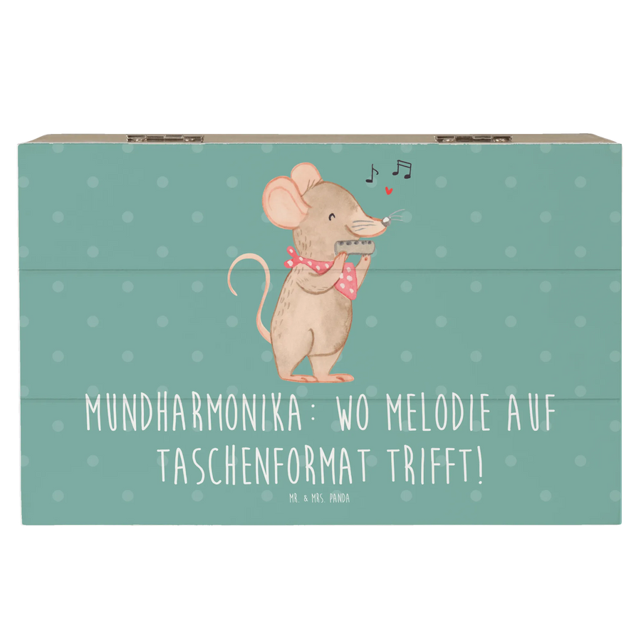 Die wunderschöne Holzkiste von Mr. & Mrs. Panda, bedruckt mit dem einzigartigen Motiv der Mundharmonika, ist das perfekte Geschenk für jeden Musikliebhaber.