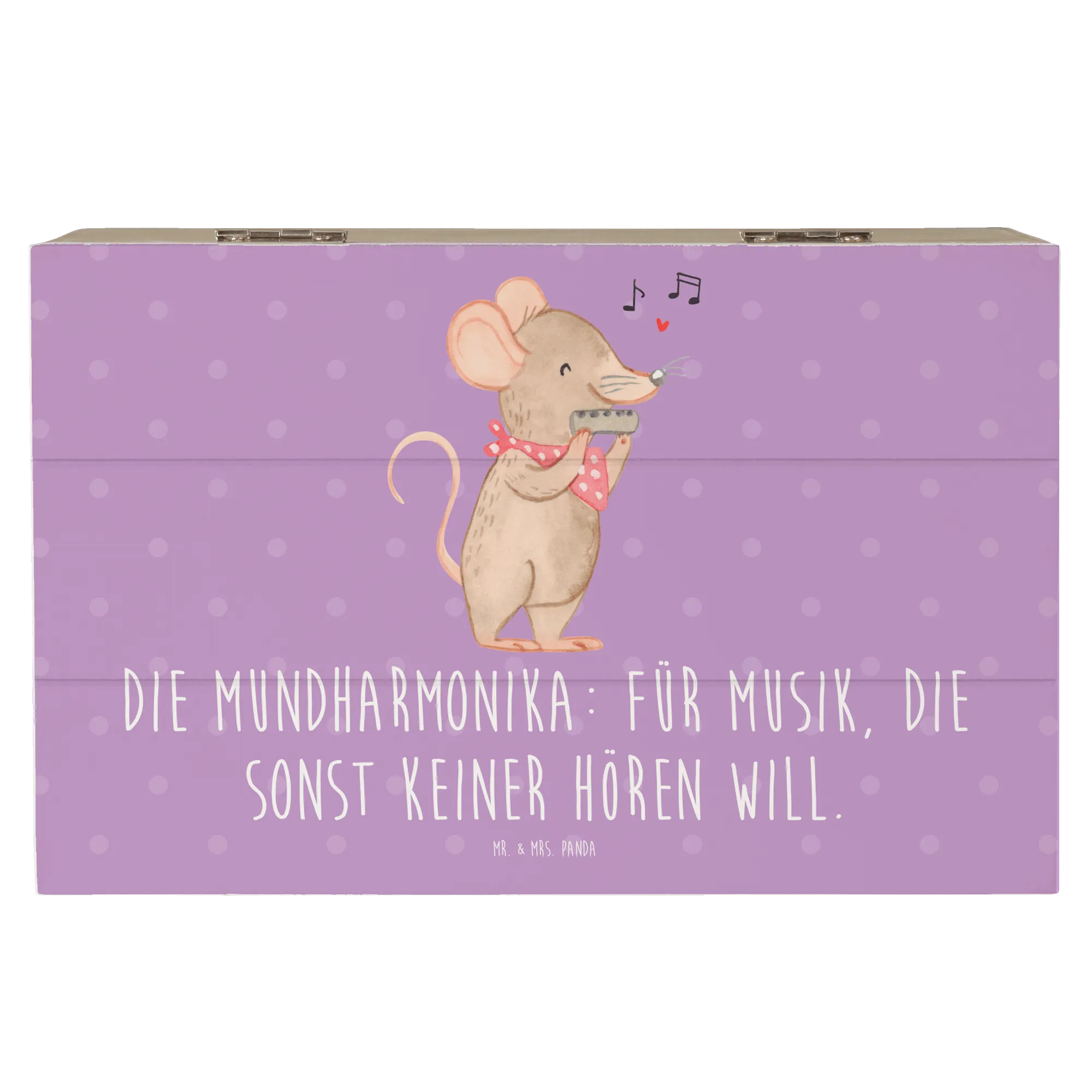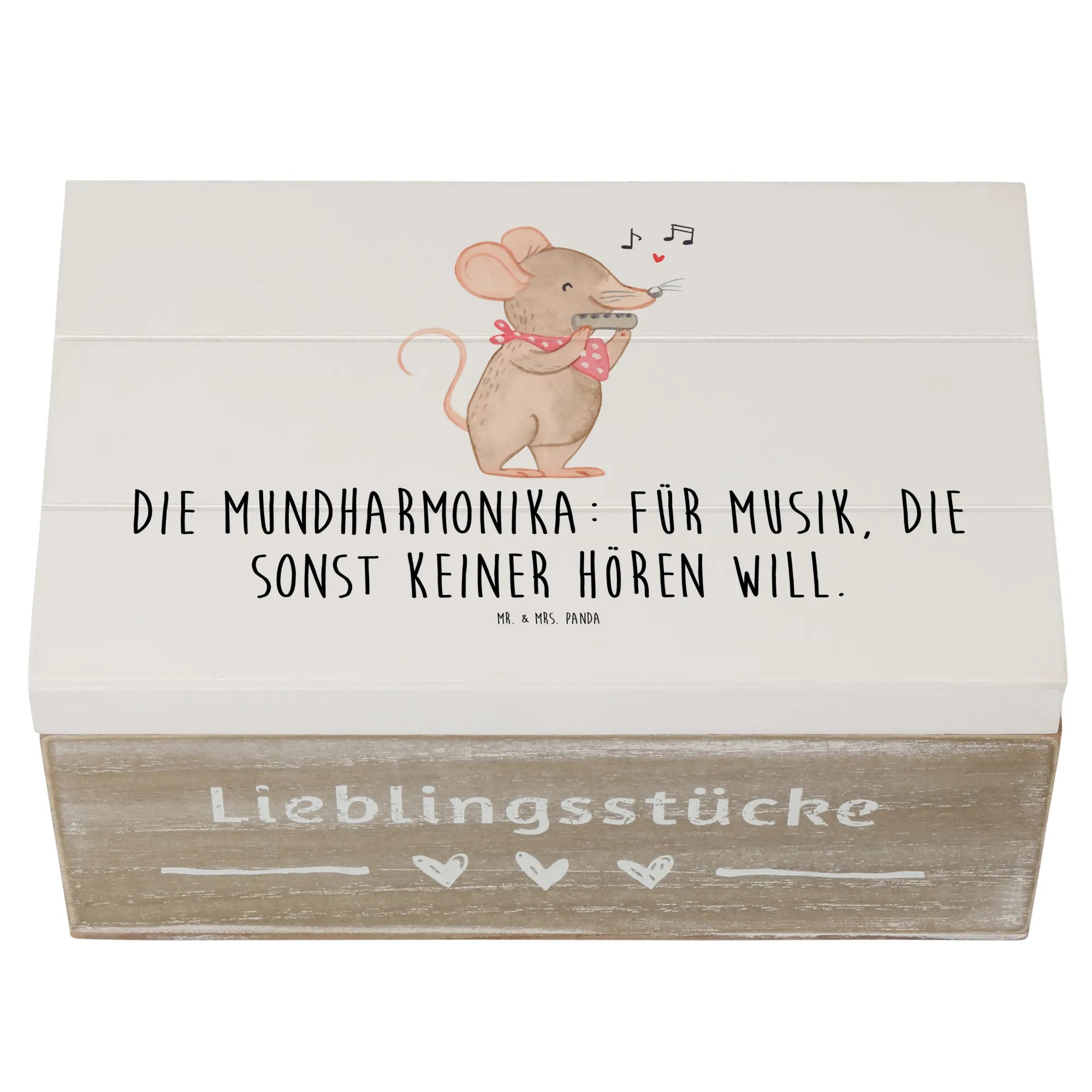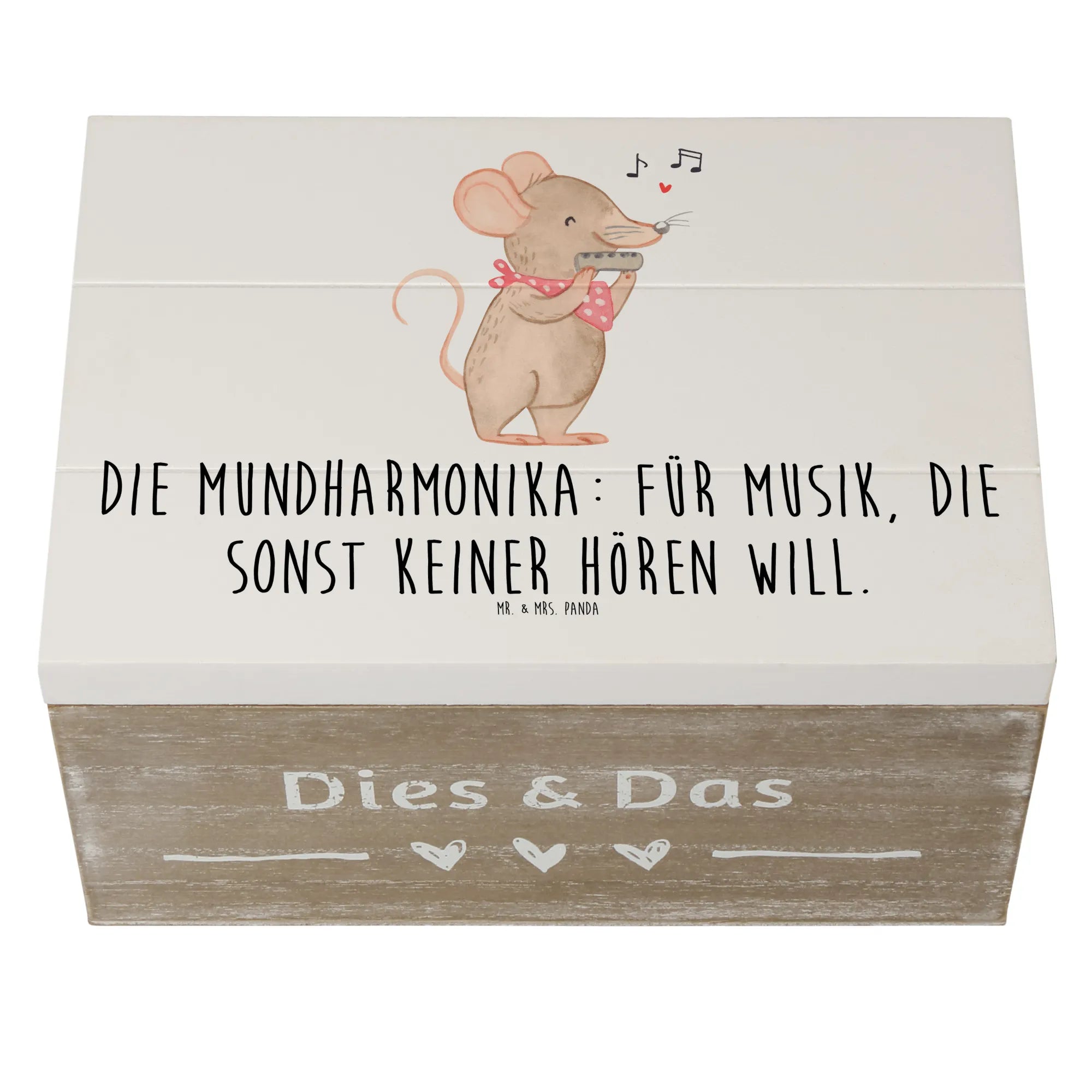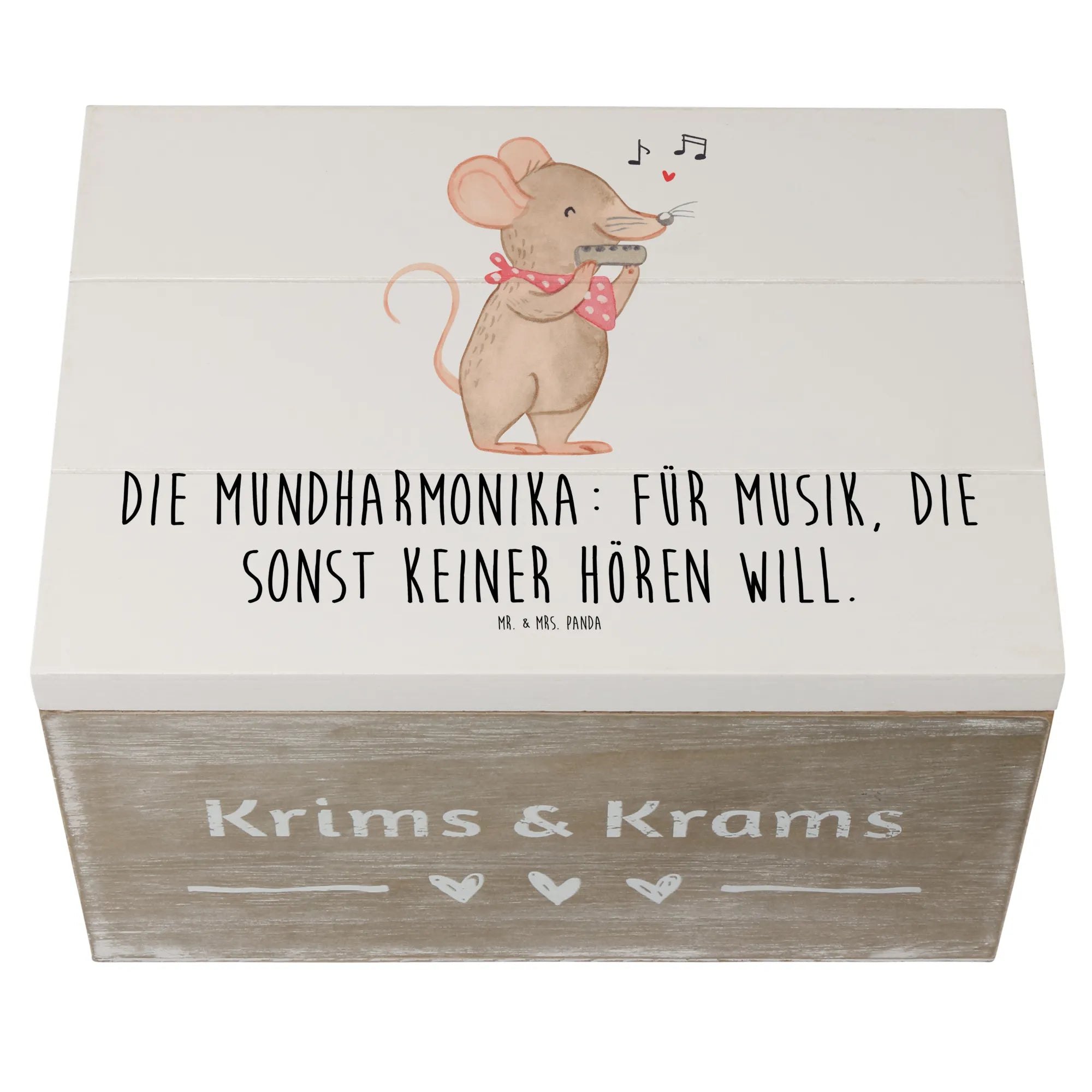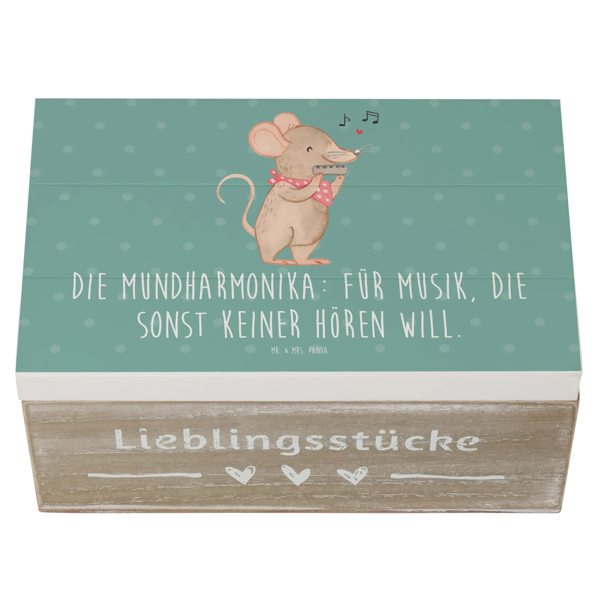 Die Holzkiste von Mr. & Mrs. Panda ist nicht nur ein wunderschöner Aufbewahrungsort, sondern auch ein liebevolles Geschenk für Musikliebhaber und kreative Köpfe! Mit dem zauberhaften Motiv der Mundharmonika sowie dem humorvollen Slogan "Die Mundharmonika: Für Musik, die sonst keiner hören will" wird diese Schatzkiste zum idealen Begleiter für besondere Erinnerungen.