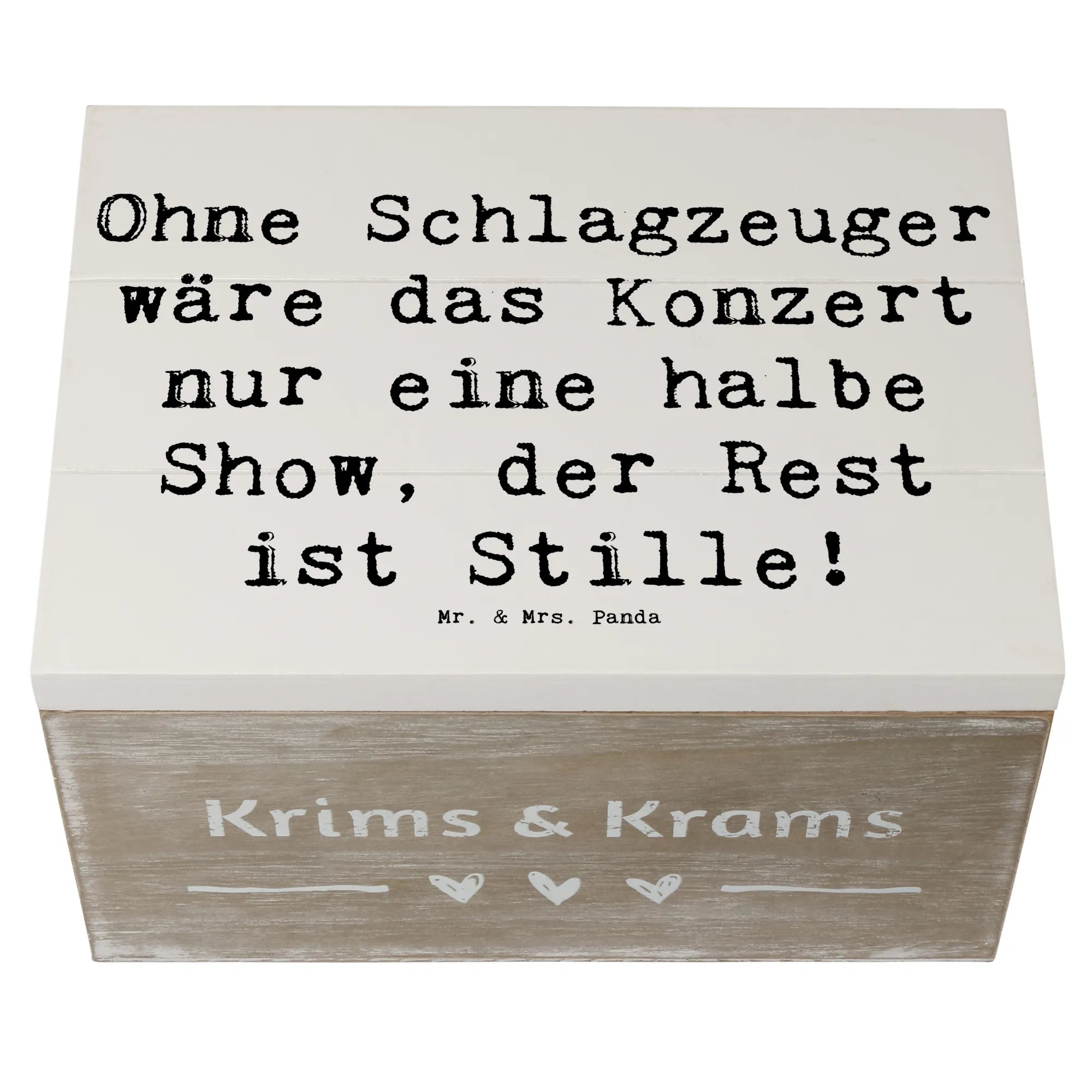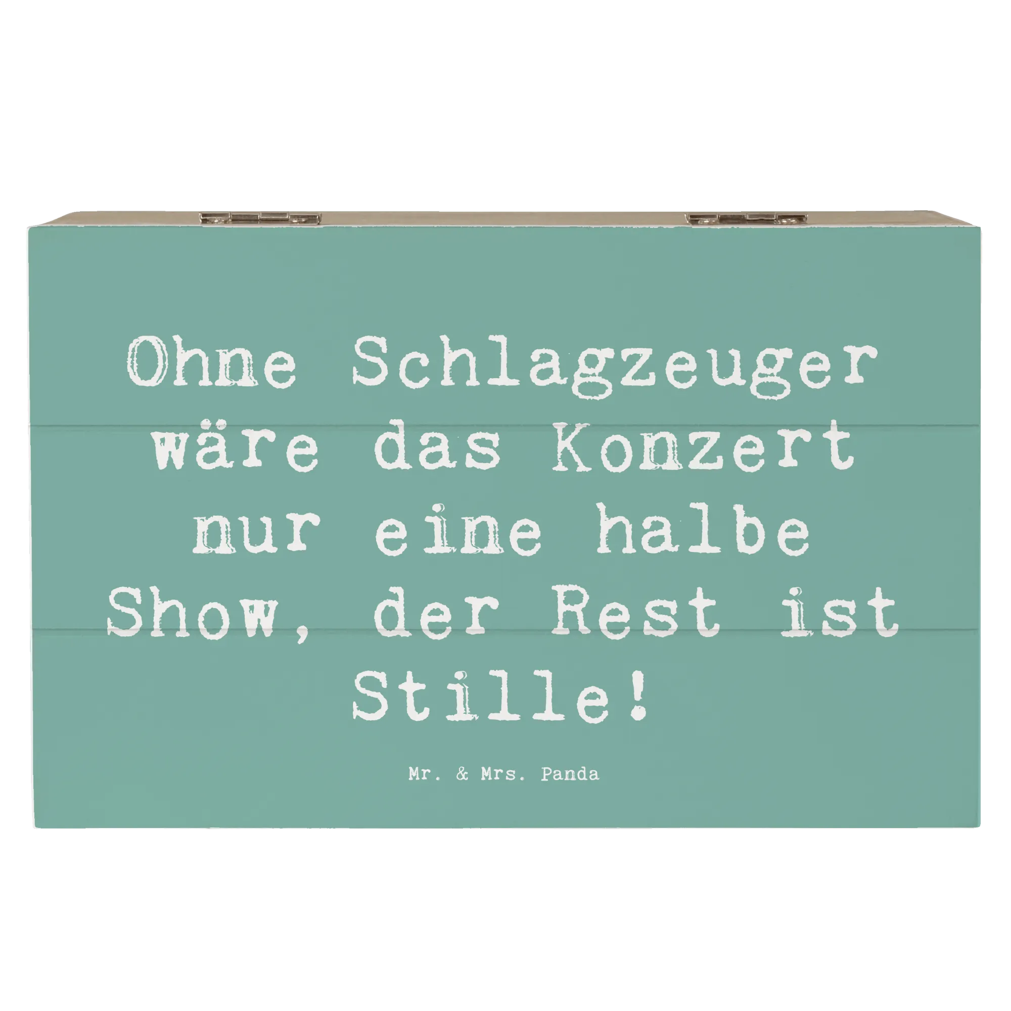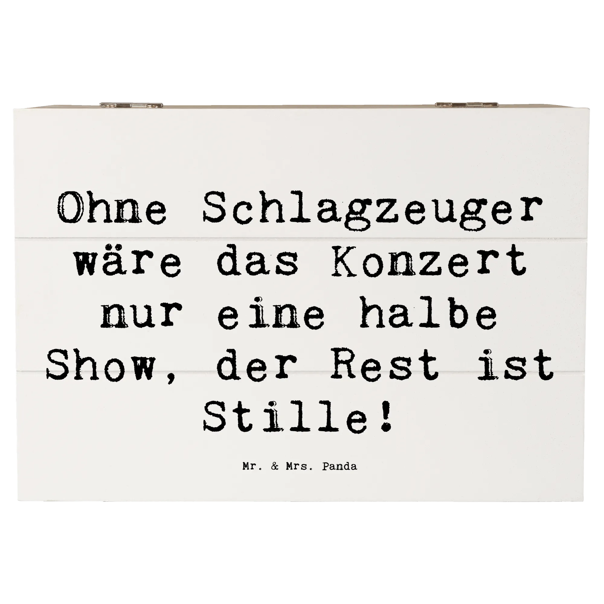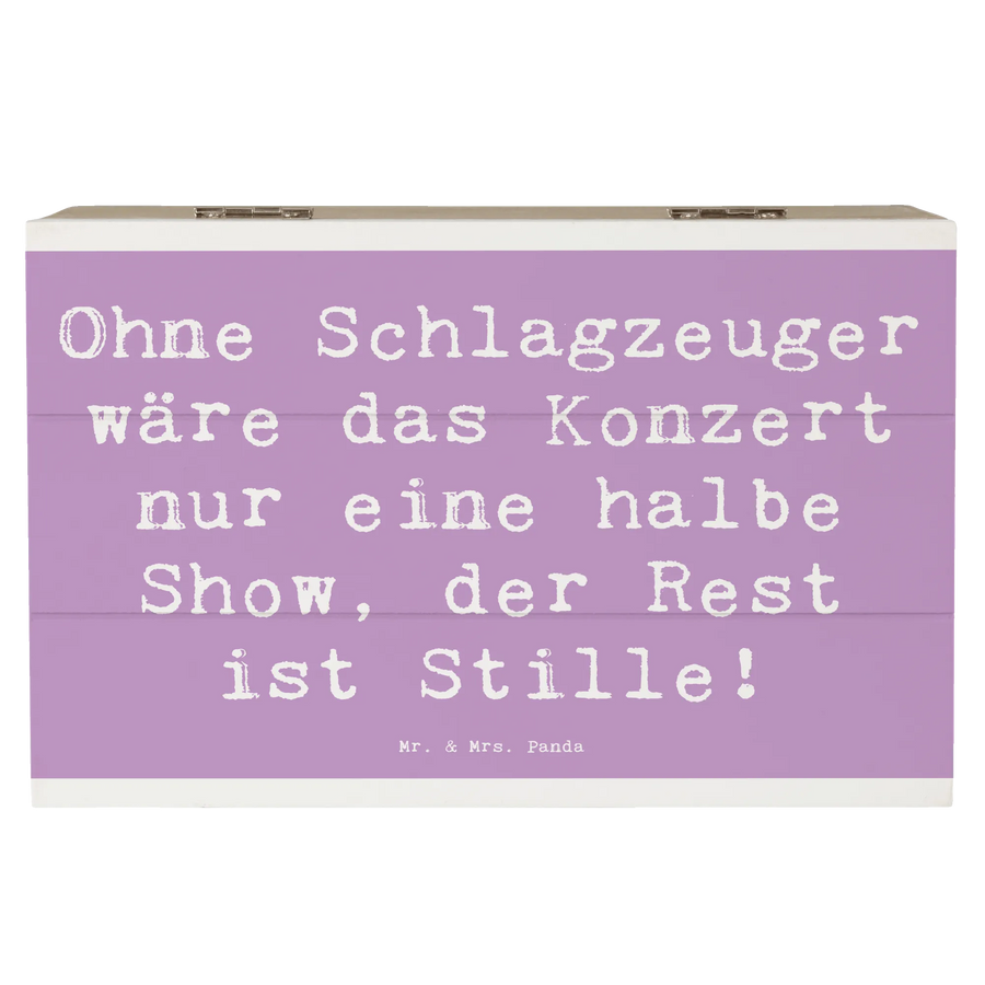 Die wunderschöne Holzkiste von Mr. & Mrs. Panda ist das perfekte Geschenk für jeden Musikliebhaber. Bedruckt mit dem kraftvollen Motiv eines Schlagzeugs und dem Spruch "Ohne Schlagzeuger wäre das Konzert nur eine halbe Show, der Rest ist Stille!" bietet diese Kiste nicht nur eine praktische Aufbewahrungsmöglichkeit, sondern auch eine stilvolle Dekoration für jedes Zuhause.