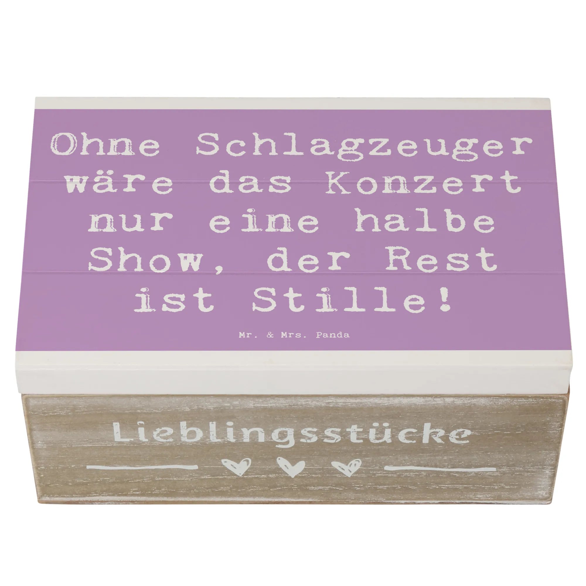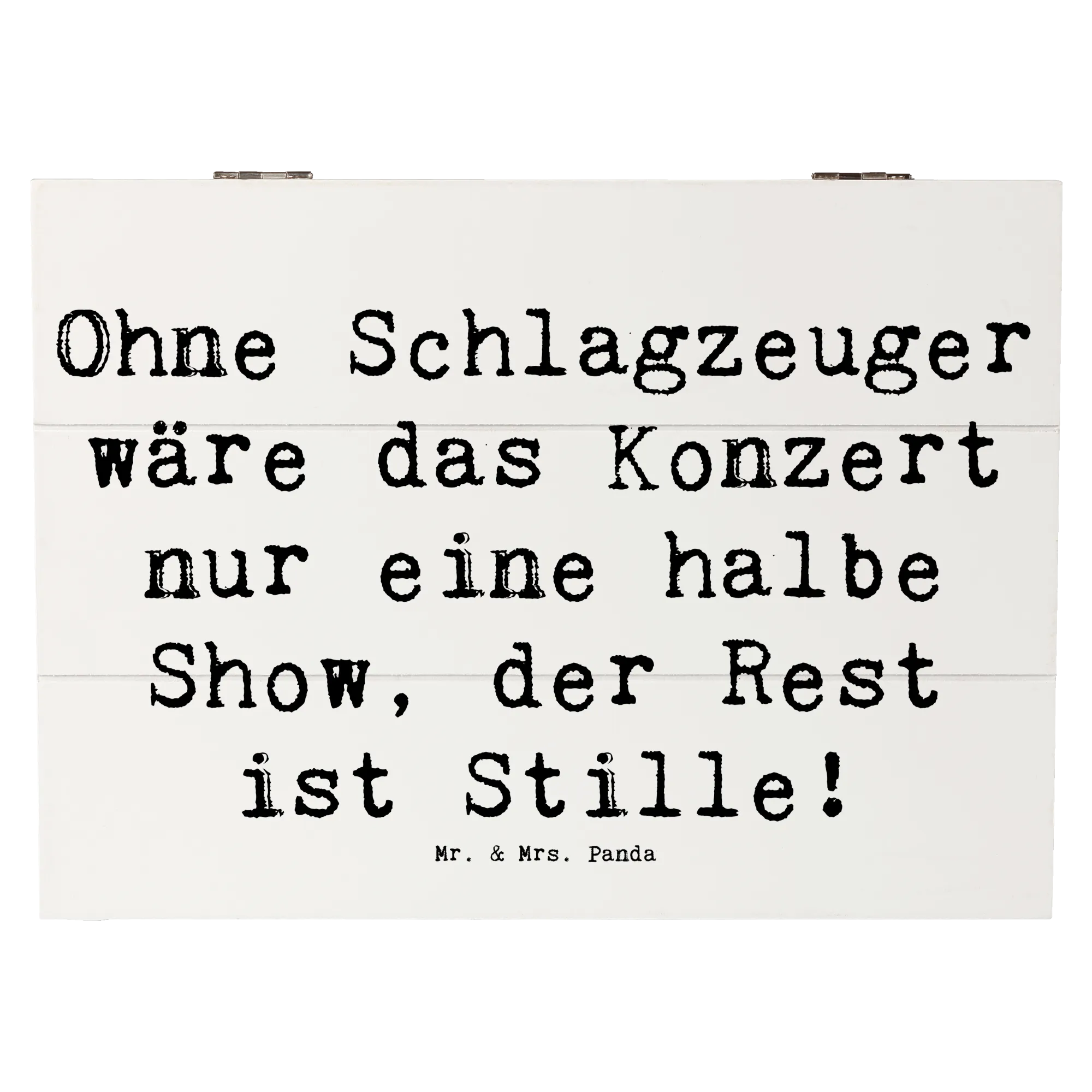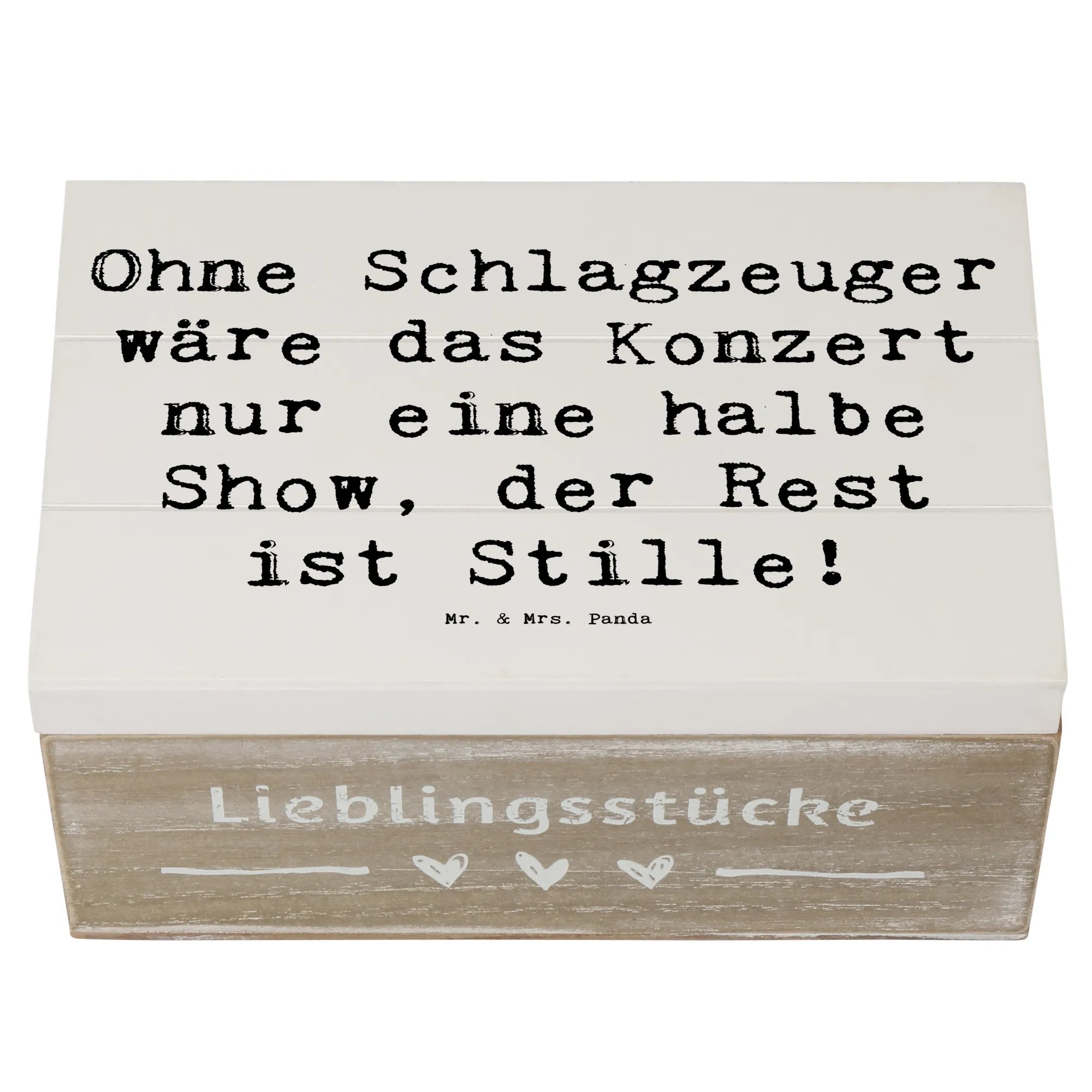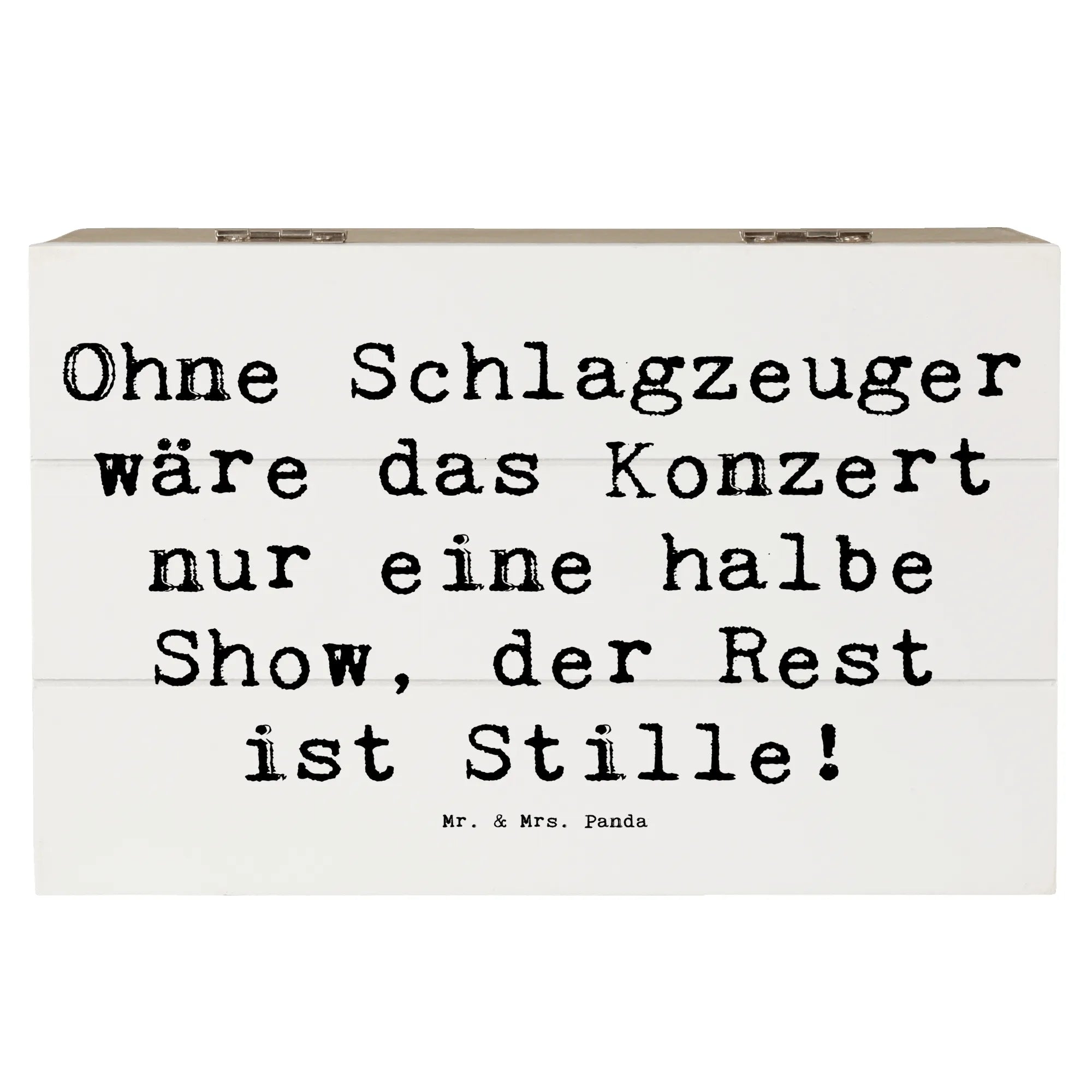 Die wunderschöne Holzkiste von Mr. & Mrs. Panda ist das perfekte Geschenk für jeden Musikliebhaber. Bedruckt mit dem kraftvollen Motiv eines Schlagzeugs und dem Spruch "Ohne Schlagzeuger wäre das Konzert nur eine halbe Show, der Rest ist Stille!" bietet diese Kiste nicht nur eine praktische Aufbewahrungsmöglichkeit, sondern auch eine stilvolle Dekoration für jedes Zuhause.