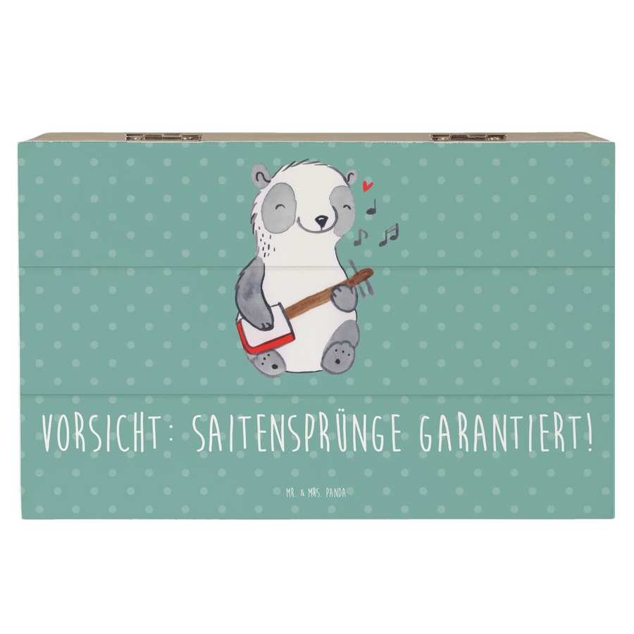 Besonders toll ist, dass diese Kiste auch als nachhaltige Geschenkbox genutzt werden kann – ideal für Anlässe wie Kommunion, Konfirmation oder als nostalgische Erinnerungskiste für besondere Momente. Mit dem witzigen Slogan "Vorsicht: Saitensprünge garantiert!" wird diese Kiste zu einem besonderen Geschenk für Musikliebhaber und alle, die das Musizieren lieben.