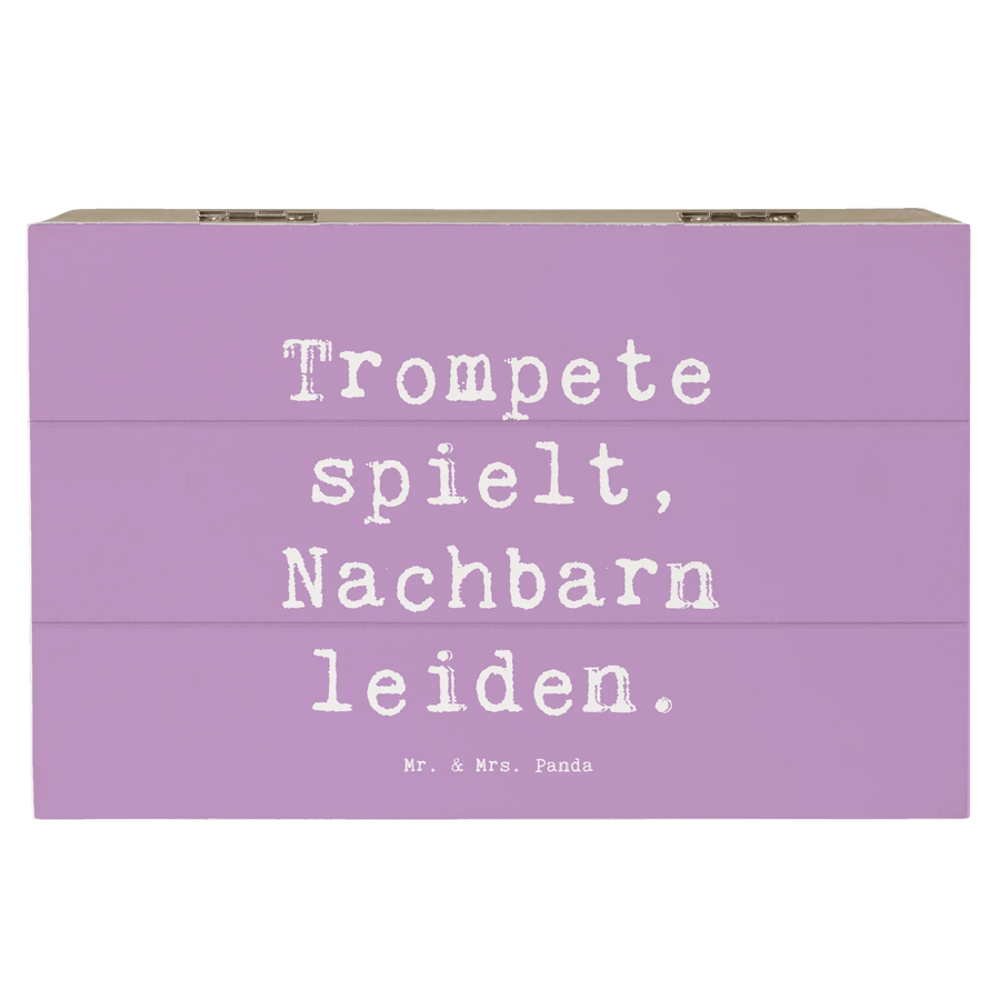 Die Holzkiste Trompete von Mr. & Mrs. Panda ist der perfekte Begleiter für alle Musikliebhaber und Musiker! Mit ihrem charmanten Design ist sie nicht nur eine wunderschöne Aufbewahrungsbox, sondern auch ein echtes Schmuckstück in jedem Raum. Die Kiste besitzt das witzige Motto "Trompete spielt, Nachbarn leiden." und bringt garantiert ein Lächeln in jedes Gesicht.