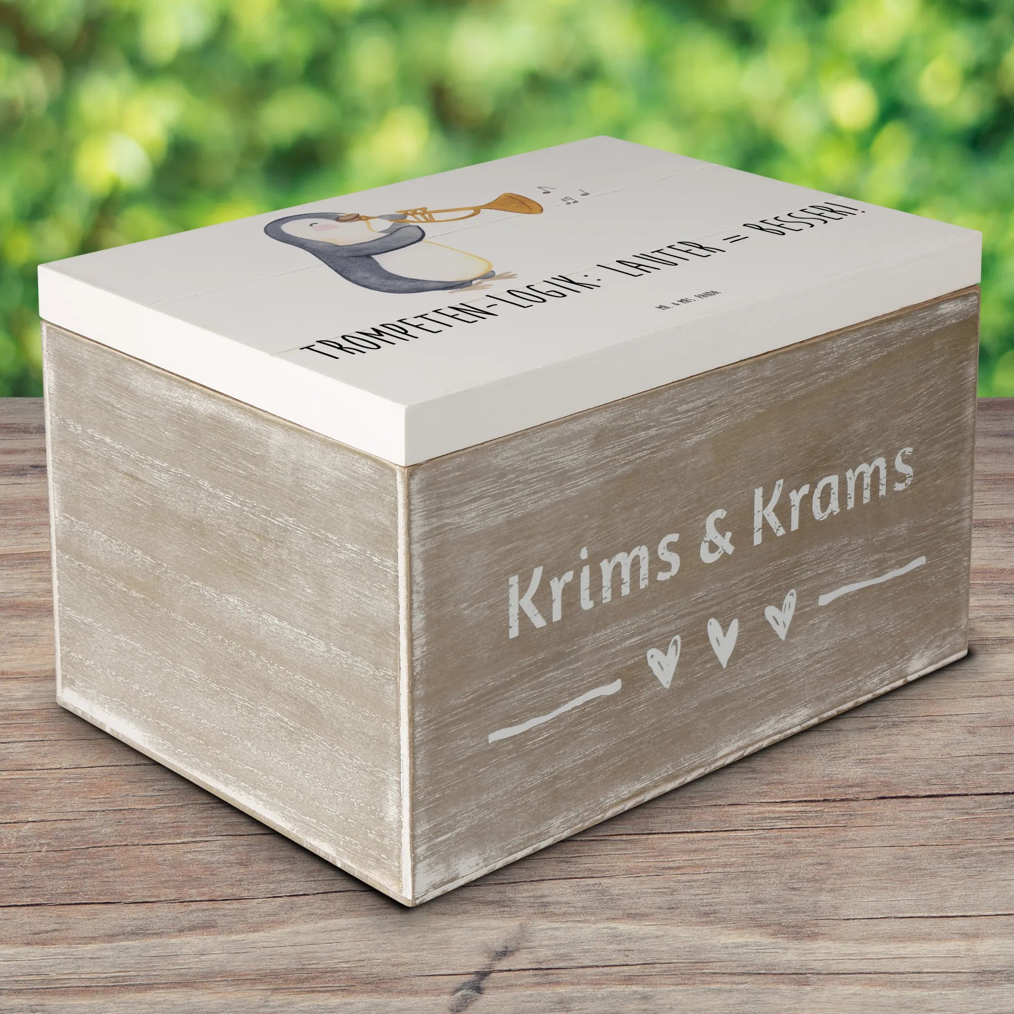 Entdecke die wunderbare Holzkiste von Mr. & Mrs. Panda, die nicht nur ein Aufbewahrungsort, sondern auch ein stilvolles Geschenk ist! Mit einem bezaubernden Trompeten-Motiv und dem witzigen Slogan "Trompeten-Logik: Lauter = Besser!" wird sie zum perfekten Begleiter für jeden Musikliebhaber. Diese Erinnerungsbox ist ideal für die Aufbewahrung von Schätzen, wie Fotos, Dokumenten oder kleinen Andenken an unvergessliche Momente.