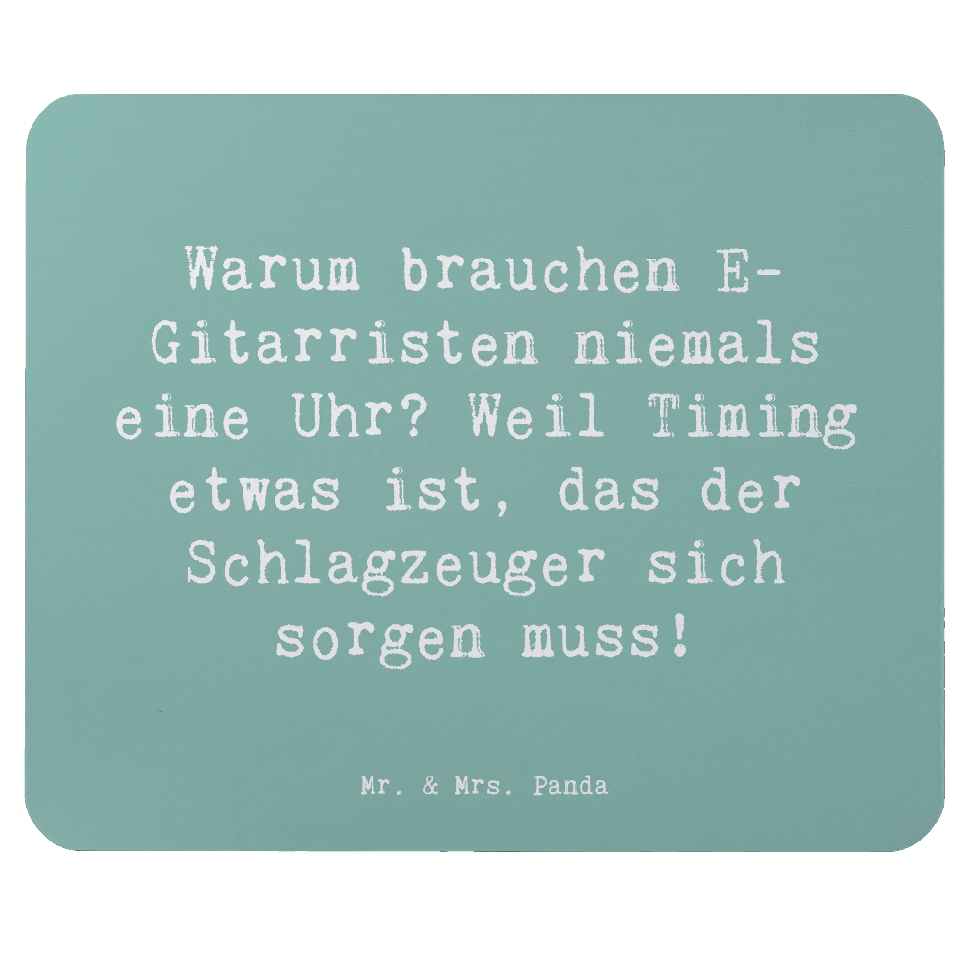 Suchst du nach dem perfekten Geschenk für einen Musikliebhaber oder E-Gitarren-Fan? Dann ist das Mauspad mit dem E-Gitarren-Motiv von Mr. & Mrs. Panda genau das Richtige! Mit seinem einzigartigen Design und dem witzigen Spruch "Warum brauchen E-Gitarristen niemals eine Uhr? Weil Timing etwas ist, das der Schlagzeuger sich Sorgen muss!" bringt es nicht nur Freude, sondern auch eine persönliche Note in jeden Arbeitsplatz oder jedes Homeoffice.