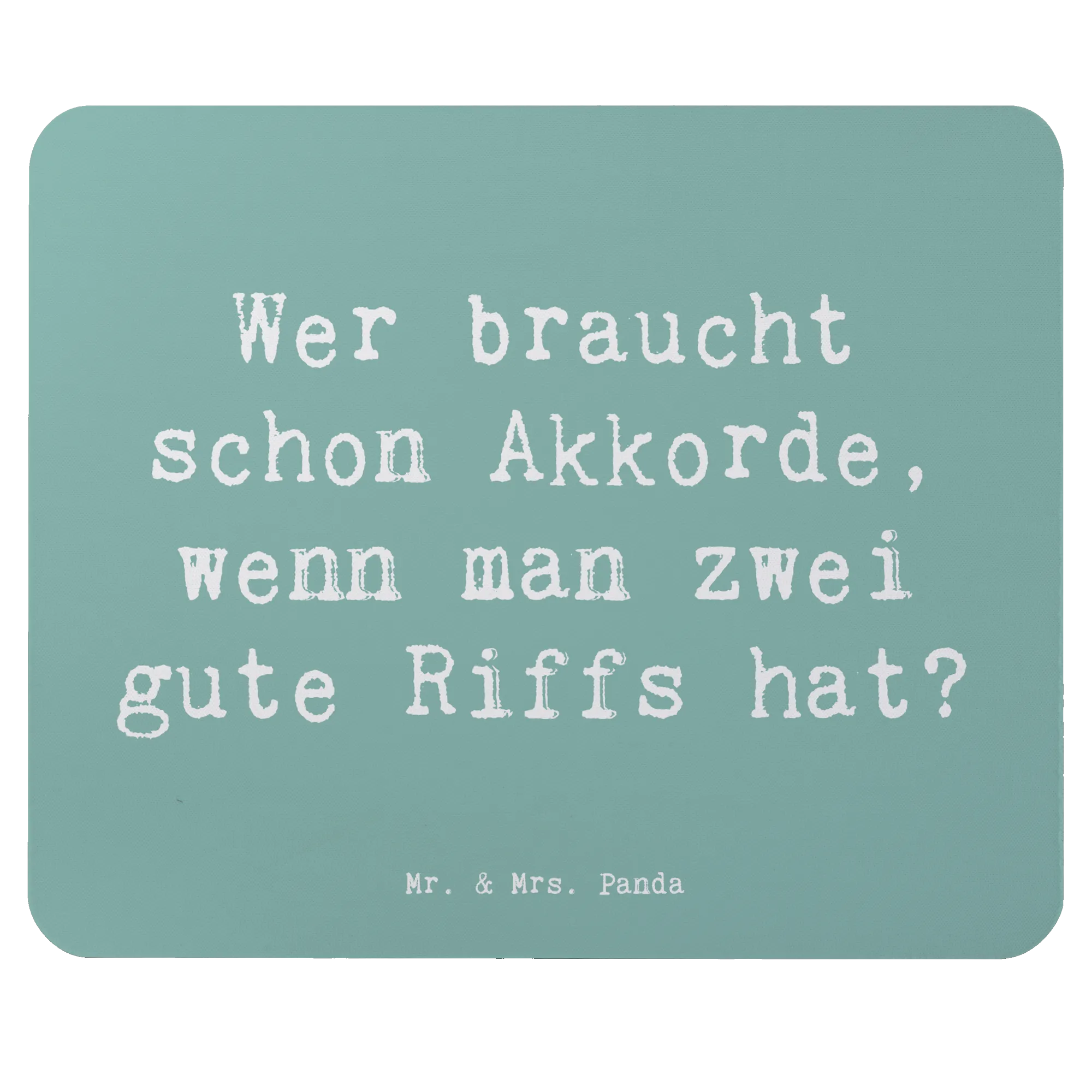 Das perfekte Mauspad für alle Musikliebhaber und E-Gitarren-Fans – unser E-Gitarre Mauspad von Mr. & Mrs. Panda ist nicht nur ein praktisches Computer Zubehör, sondern auch ein echtes Design-Highlight für dein Arbeitszimmer. Mit dem Spruch „Wer braucht schon Akkorde, wenn man zwei gute Riffs hat?“ begeistert dieses Designer Mauspad vor allem die kreativen Köpfe unter den Musikern und Musikerinnen. Es ist das ideale Geschenk für jeden, der die elektrische Gitarre liebt oder vielleicht gerade damit anfängt, ein Instrument zu lernen.