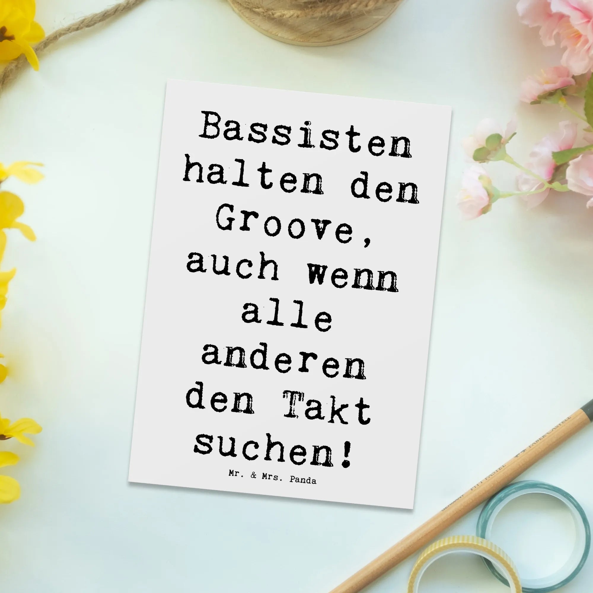 Entdecke die perfekte Postkarte von Mr. & Mrs. Panda mit dem einzigartigen Motiv einer Bassgitarre! Diese Karte ist mehr als nur Papier – sie ist eine liebevolle Hommage an das Musizieren. Egal, ob du sie einem Bassisten zum Geburtstag, einem Musikliebhaber zur Hochzeit oder einfach als kleine Aufmerksamkeit zu einem besonderen Anlass schenken möchtest, diese Karte kommt immer gut an! Mit dem Spruch "Bassisten halten den Groove, auch wenn alle anderen den Takt suchen!" spricht sie direkt das Herz eines jeden Musikers an.