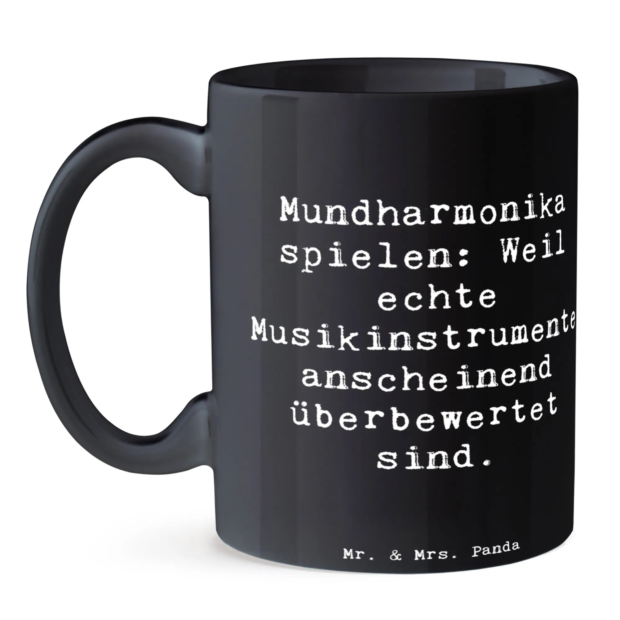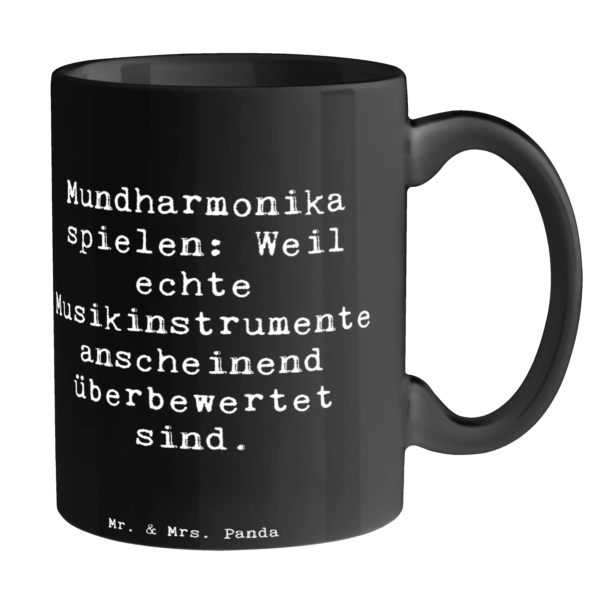 Tasse Spruch Mundharmonika spielen: Weil echte Musikinstrumente anscheinend überbewertet sind. - Schwarz