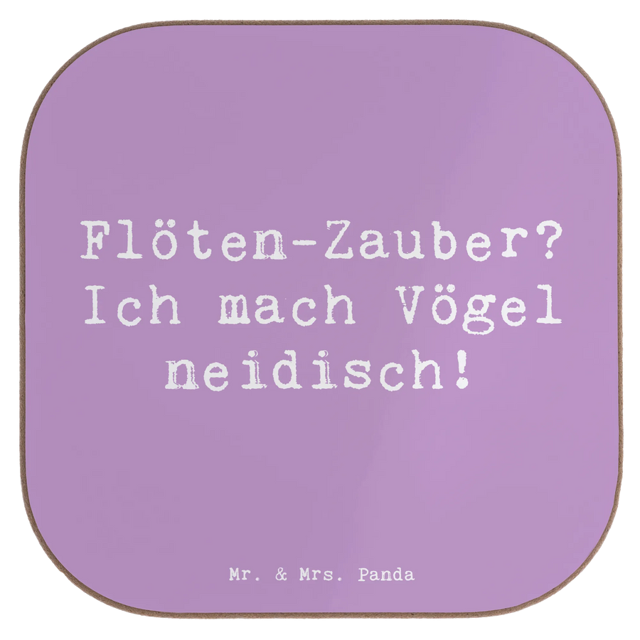 Dieser wunderschöne quadratische Untersetzer von Mr. & Mrs. Panda schützt deinen Tisch nicht nur vor Abdrücken und Kratzern, sondern bringt auch eine Melodie der Freude in dein Zuhause. Mit einem charmanten Spruch "Flöten-Zauber? Ich mach Vögel neidisch!" sorgt er für ein Lächeln auf den Lippen jedes Musikbegeisterten.