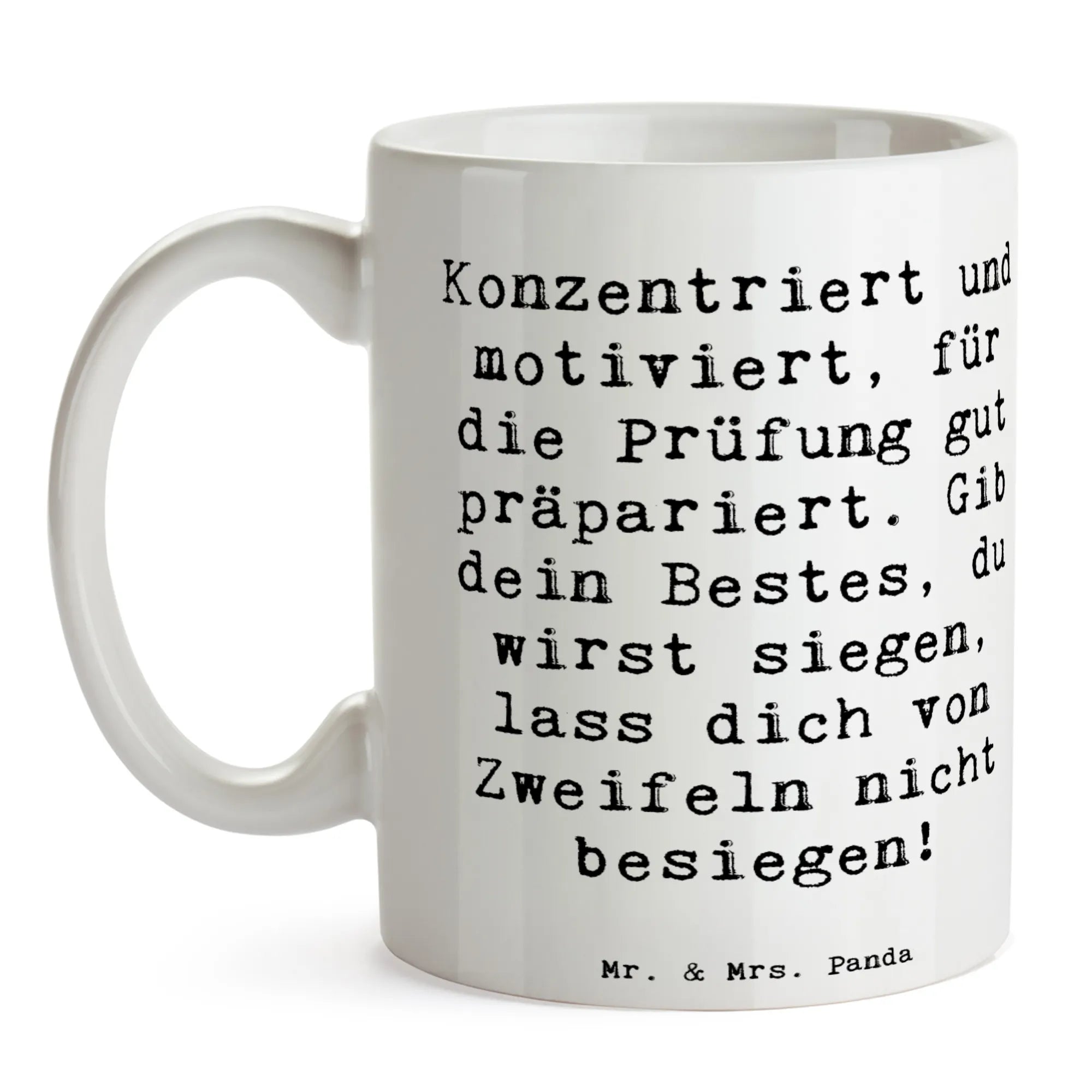 Dieses liebevolle Spruch drückt aus, dass wenn du konzentriert und motiviert bleibst, du bestens präpariert in die Prüfung gehst. Gib dein Bestes, und du wirst auf jeden Fall siegen, wenn du den Zweifeln keinen Platz lässt!