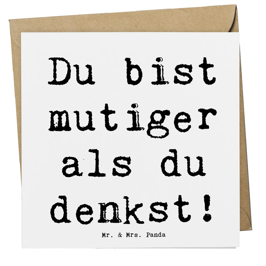 Der aufmerksame Spruch "Du bist mutiger als du denkst!" wird das Herz des Empfängers berühren und ihm Mut machen, neue Herausforderungen anzunehmen. Hergestellt aus hochwertigem 300-Gramm-Karton, bietet diese Karte eine edle Haptik und einen hohen Qualitätsanspruch. Die hochglänzend veredelte Vorderseite in Kombination mit der matten Innenseite zur einfachen Beschriftung sorgt dafür, dass du die Karte ganz individuell gestalten kannst.
