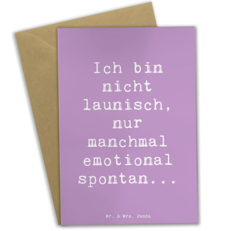 Die wunderschöne Grußkarte aus der Mutmacher Kollektion von Mr. & Mrs. Panda ist einfach der perfekte Weg, um Emotionen auszudrücken. Mit dem Spruch "Ich bin nicht launisch, nur manchmal emotional spontan..." bringt diese Karte nicht nur ein Lächeln auf die Gesichter der Empfänger, sondern vermittelt auch eine Botschaft der Zuversicht und des Trostes. Ob zum Geburtstag, zur Hochzeit, als Einladung oder einfach so als kleine Aufmerksamkeit – diese Karte passt zu jeder Gelegenheit!