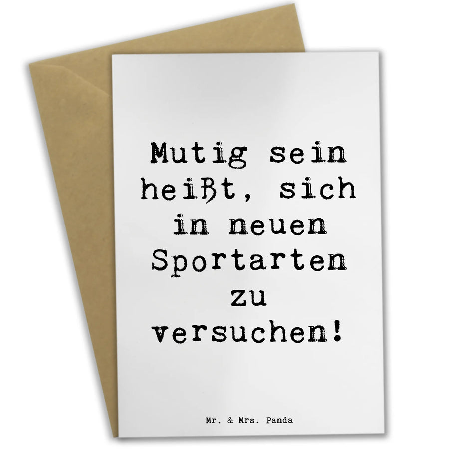 Die Grußkarte "Sich in einer neuen Sportart versuchen" aus der besonderen Mutmacher-Kollektion von Mr. & Mrs. Panda ist das perfekte Geschenk für alle, die den Mut haben, Neues auszuprobieren und ihre Komfortzone zu verlassen!
