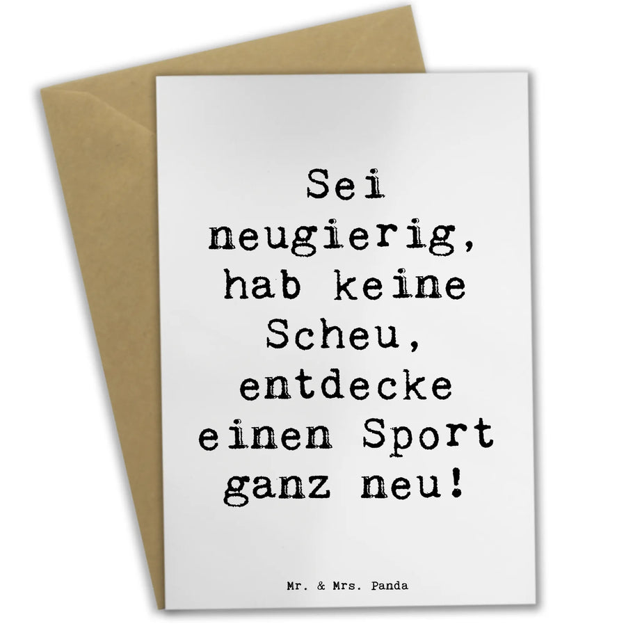 Die Grußkarte "Sich in einer neuen Sportart versuchen" aus der Mutmacher-Kollektion von Mr. & Mrs. Panda ist das perfekte Geschenk für all jene, die neugierig auf neue Abenteuer sind. Egal, ob der Anlass ein Geburtstag, eine Hochzeit oder einfach nur ein schöner Tag ist – diese Karte ist immer eine gelungene Wahl. Sie ermutigt dazu, Herausforderungen anzugehen und neue Dinge auszuprobieren.