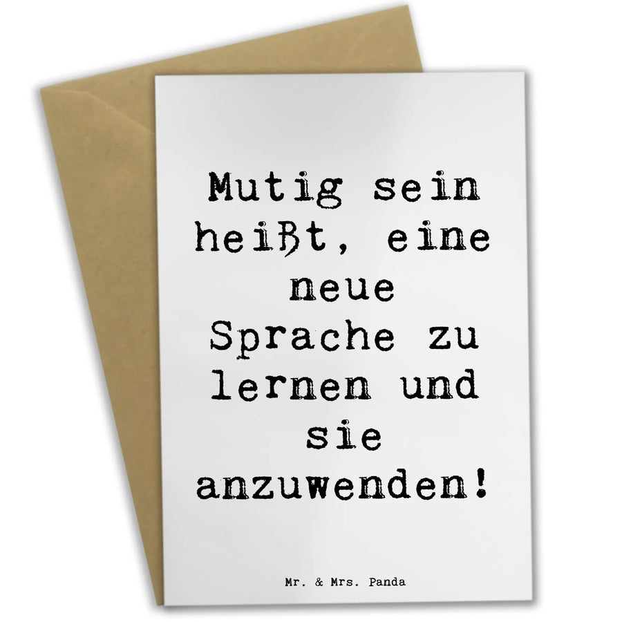 Die Grußkarte "Mutig sein heißt, eine neue Sprache zu lernen und sie anzuwenden!" aus der Mutmacher-Kollektion von Mr. & Mrs. Panda ist nicht nur eine Karte, sondern eine herzerwärmende Botschaft für all die mutigen Seelen da draußen, die bereit sind, die Welt der Sprachen zu entdecken.