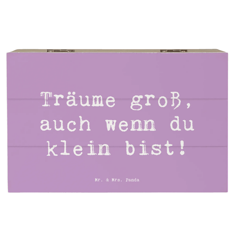 Diese liebevoll gestaltete Holzkiste in zartem Lavendeltraum trägt den ermutigenden Spruch „Träume groß, auch wenn du klein bist!“ und ist Teil unserer besonderen Mutmacher-Kollektion. Sie ist die perfekte Erinnerungskiste, Geschenkbox und Schatzkiste zugleich – ideal für Momente, in denen Mut, Zuversicht und Trost gefragt sind.