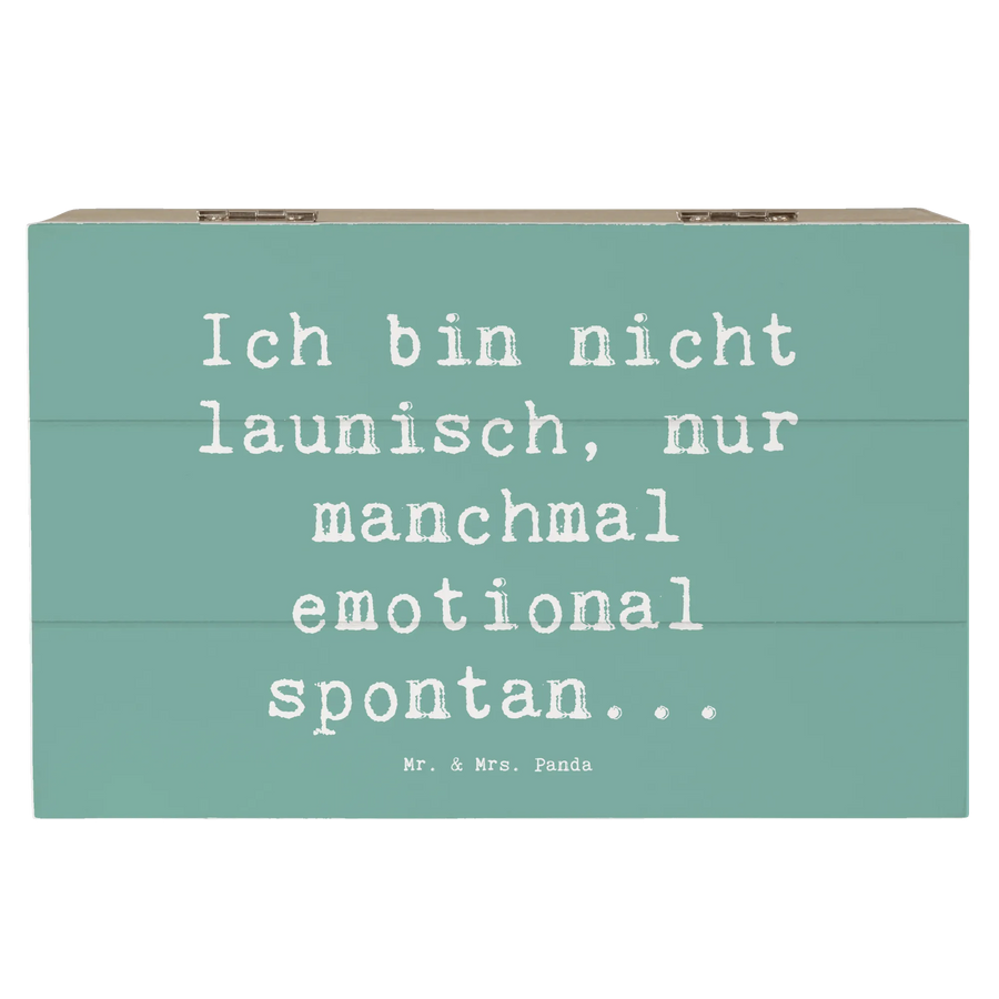 Ein ganz besonderes Highlight dieser Holzkiste ist der Spruch "Ich bin nicht launisch, nur manchmal emotional spontan...". Dieser Spruch bringt nicht nur ein Lächeln ins Gesicht, sondern erinnert uns auch daran, dass es in Ordnung ist, seine Emotionen zu zeigen. Sie eignet sich hervorragend als Geschenk für Freunde und Familie, die ein wenig Mut und Zuversicht brauchen oder einfach als Erinnerung an die schönen Dinge im Leben.