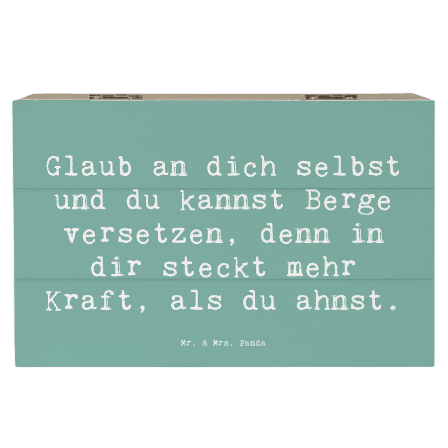 Diese wunderschöne Holzkiste von Mr. & Mrs. Panda ist nicht nur ein praktischer Aufbewahrungsort für all deine Schätze, sondern auch ein Quell der Inspiration und Ermutigung. Der liebevoll gestaltete Spruch, "Glaub an dich selbst und du kannst Berge versetzen, denn in dir steckt mehr Kraft, als du ahnst!", ist perfekt, um die Kleinen oder auch die Großen zu motivieren und sie daran zu erinnern, was in ihnen steckt.
