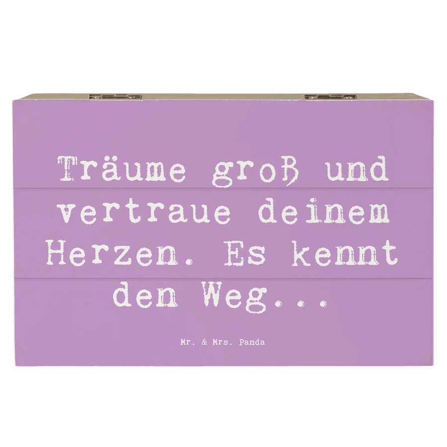 Das einzigartige Design besticht durch seine Einschlagscharniere, die ein einfaches Öffnen und Schließen ermöglichen. Damit ist diese Kiste perfekt geeignet, um die schönsten Momente des Lebens gut aufzubewahren. Der Spruch "Träume groß und vertraue deinem Herzen. Es kennt den Weg..." wird nicht nur zu einem Mantra, sondern zu einer Quelle der Inspiration für dich und deine Liebsten.