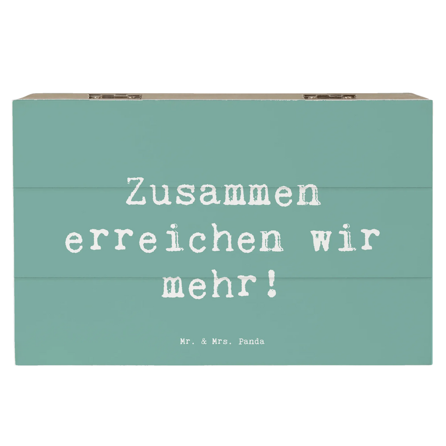 Mit dem Slogan "Zusammen erreichen wir mehr!" transportiert diese Holzkiste eine Botschaft der Zusammengehörigkeit und des gegenseitigen Vertrauens. Sie ist perfekt geeignet, um wichtige Momente im Team zu feiern, sei es bei der Arbeit, in der Schule oder im Freundeskreis. Das hübsche Design macht sie zudem zu einem dekorativen Element in jedem Raum.