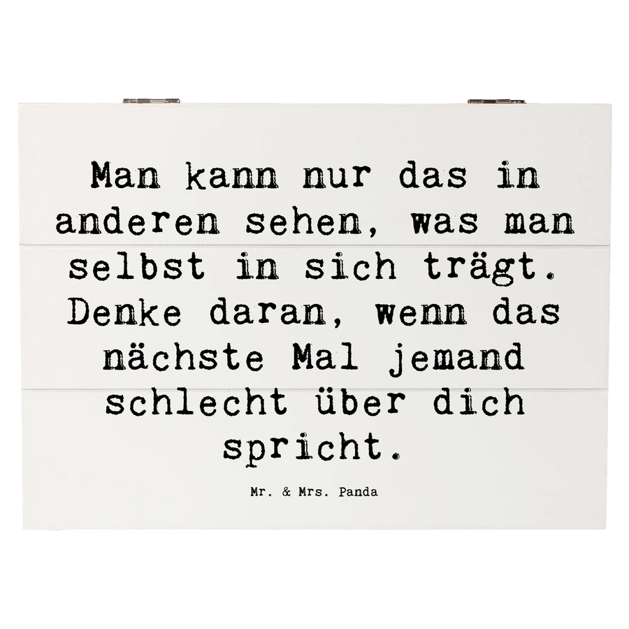 Die Kiste ist mit einem inspirierenden Spruch versehen: "Man kann nur das in anderen sehen, was man selbst in sich trägt. Denke daran, wenn das nächste Mal jemand schlecht über dich spricht." Dieser Satz ist nicht nur ein Mutmacher, sondern auch eine schöne Erinnerung daran, dass jeder von uns die Kraft hat, Herausforderungen, wie Mobbing, zu überwinden.