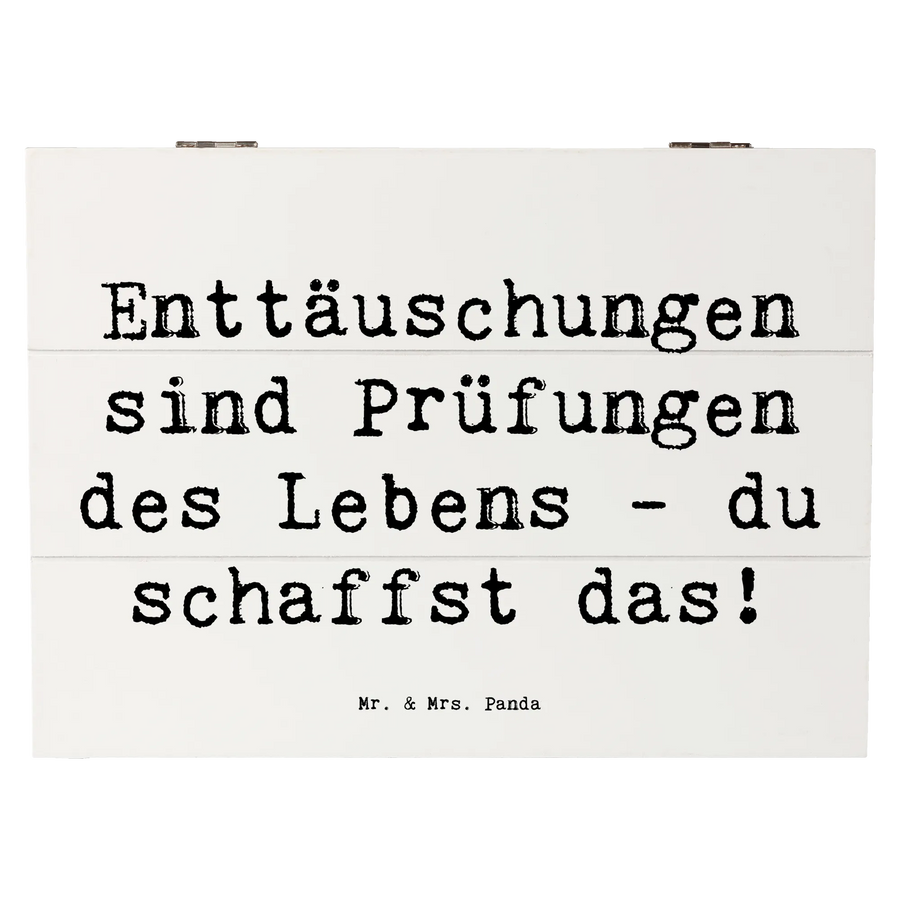Wenn du auf der Suche nach dem perfekten Geschenk für einen lieben Menschen bist, dann ist die Holzkiste "Mit Enttäuschungen umgehen" aus der Mutmacher-Kollektion von Mr. & Mrs. Panda genau das Richtige! Diese wunderschöne Holzkiste bietet nicht nur Platz für die wertvollsten Erinnerungen, sondern trägt auch eine wichtige Botschaft: "Enttäuschungen sind Prüfungen des Lebens - du schaffst das!"