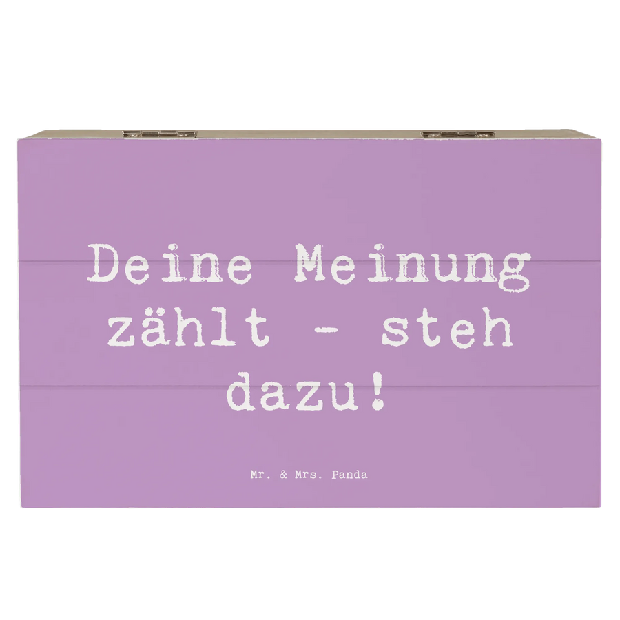 In der heutigen Zeit ist es wichtiger denn je, mutig zu seinen Meinungen zu stehen. Diese Holzkiste trägt den inspirierenden Spruch "Deine Meinung zählt - steh dazu!" und ist somit gleichzeitig ein Motivator und ein wunderschöner Aufbewahrungsort. Egal, ob du sie als Geschenk für einen Freund oder für dich selbst kaufst, sie wird sicherlich Herzen berühren und Mut spenden! 💖