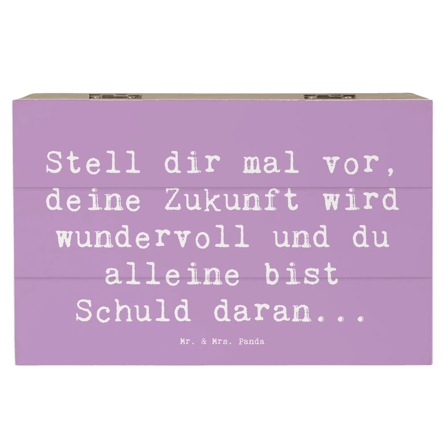Und wie sieht es mit der Botschaft aus? Die Kiste ist mit dem inspirierenden Spruch "Stell dir mal vor, deine Zukunft wird wundervoll und du alleine bist Schuld daran..." bedruckt. Dieser Satz ist nicht nur ein Mutmacher, sondern auch eine tägliche Erinnerung daran, dass du selbst die Zügel in der Hand hast und deine Zukunft gestalten kannst.